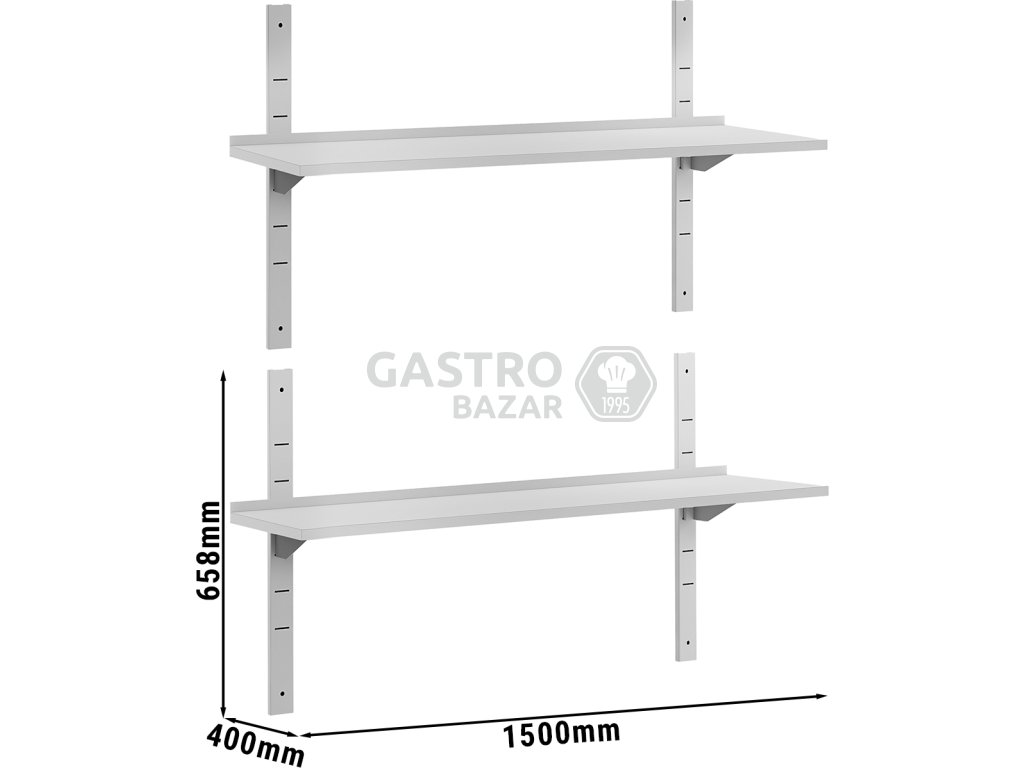 ECO Nástěnná police - 1,5 x 0,4m - 2-patrová