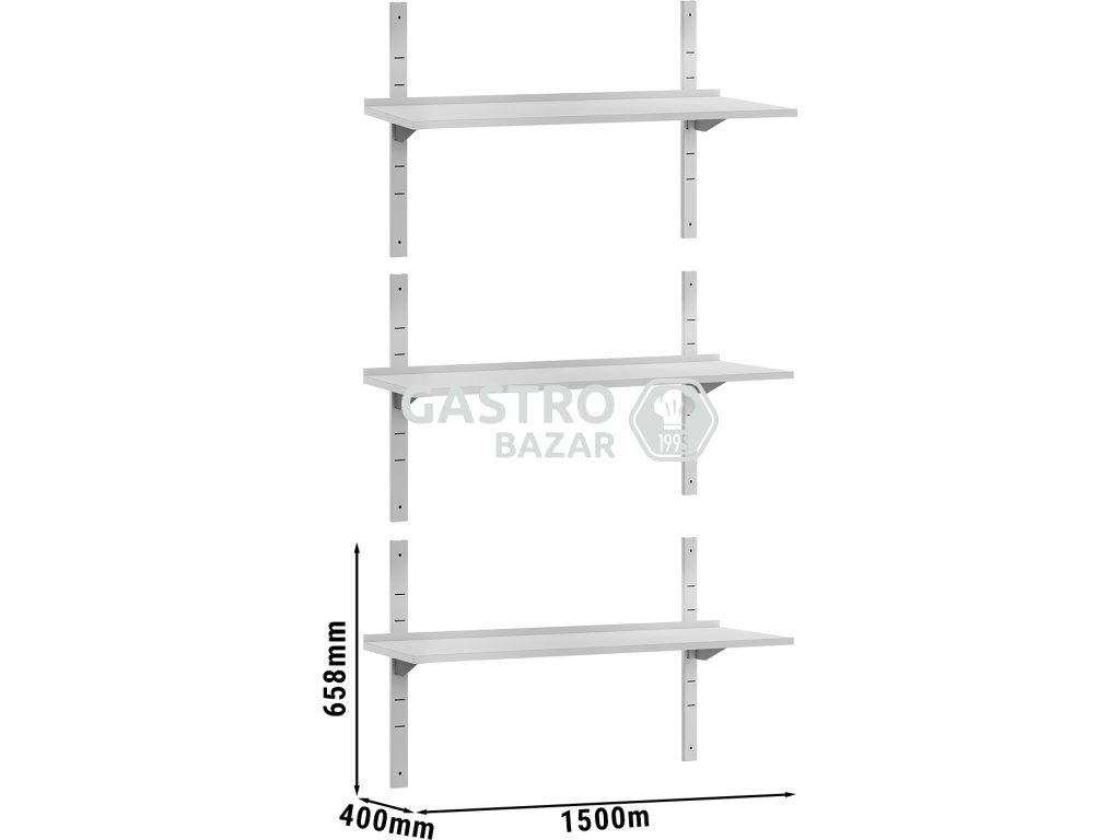 ECO Nástěnná police - 1,5 x 0,4 m - 3-patrová