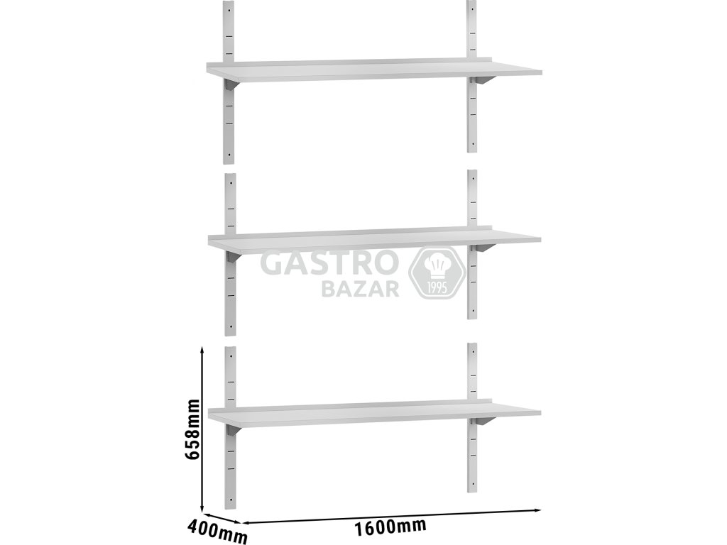 ECO Nástěnná police - 1,6 x 0,4m - 3-patrová