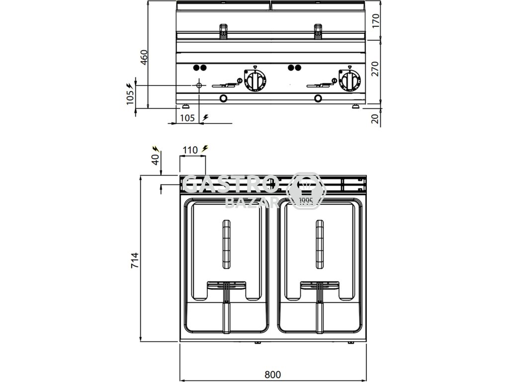 - Außenmaß B x T x H: 800 mm x 714 mm x 460 mm