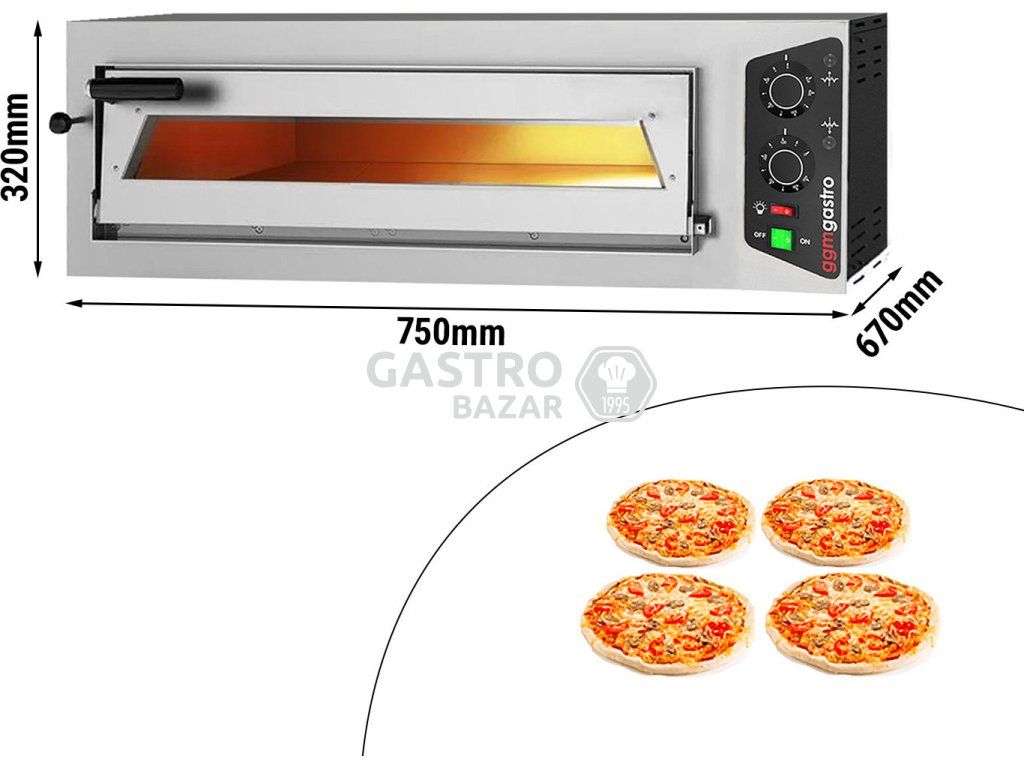 - 1 pečicí komora pro 4 pizzy s Ø 24 cm