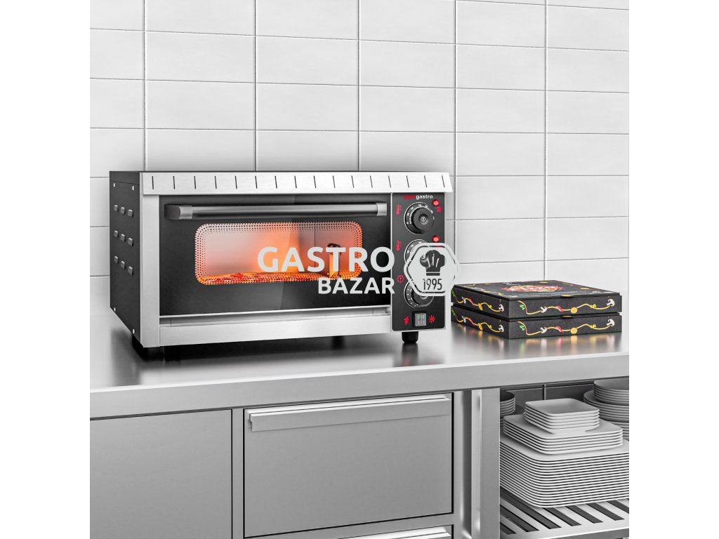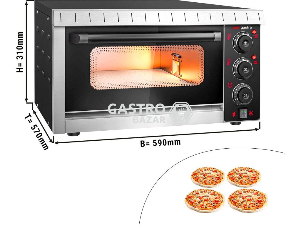 Elektrická pizza pec - Mini trouba na pizzu - 590x570 mm - 4× Ø 20 cm - až 350 °C - Manuální - černá