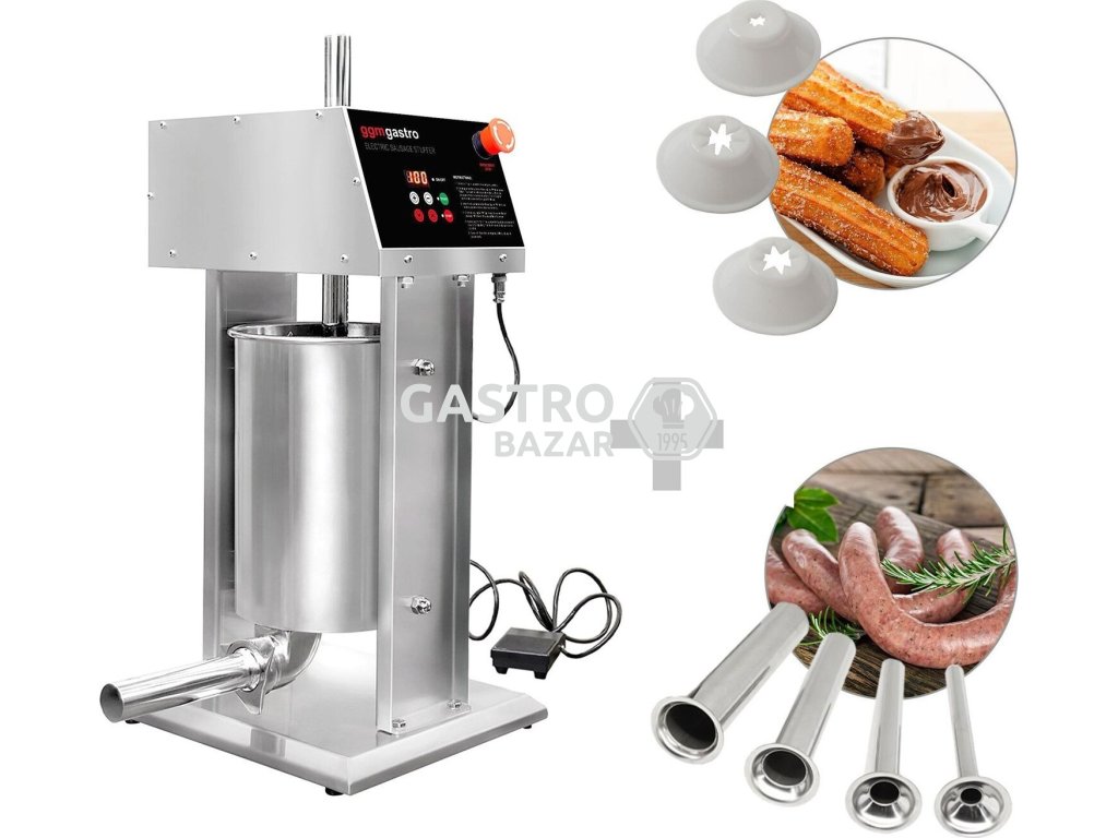 Elektrická plnička klobás & stroj na Churros - 12L - 90 W - nerezová ocel - vč. 4 nástavců a 3 nástavců na Churros
