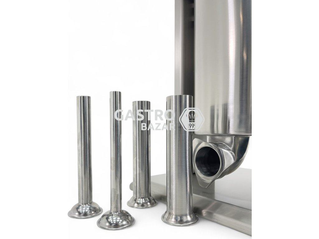 Součástí jsou trubice v průměrech 16 mm, 22 mm, 32 mm a 38 mm, díky kterým lze vyrábět tenké, střední i široké uzeniny. Ideální pro klobásy, párky, jitrnice nebo salámové průměry.