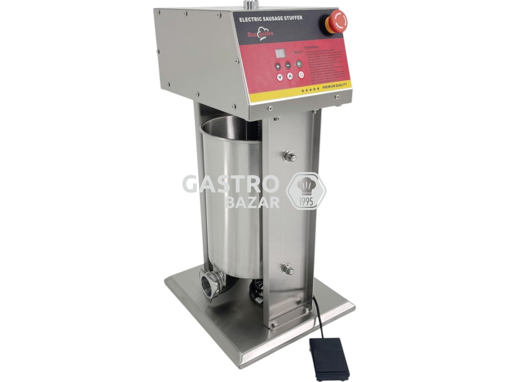 Spojuje vysokou kapacitu, tichý elektrický pohon a profesionální nerezové provedení. Díky nožnímu ovládání je práce přesná, rychlá a bezpečná. Představuje dlouhodobé řešení pro každého, kdo vyrábí uzeniny pravidelně a nechce se zdržovat ručním plněním.