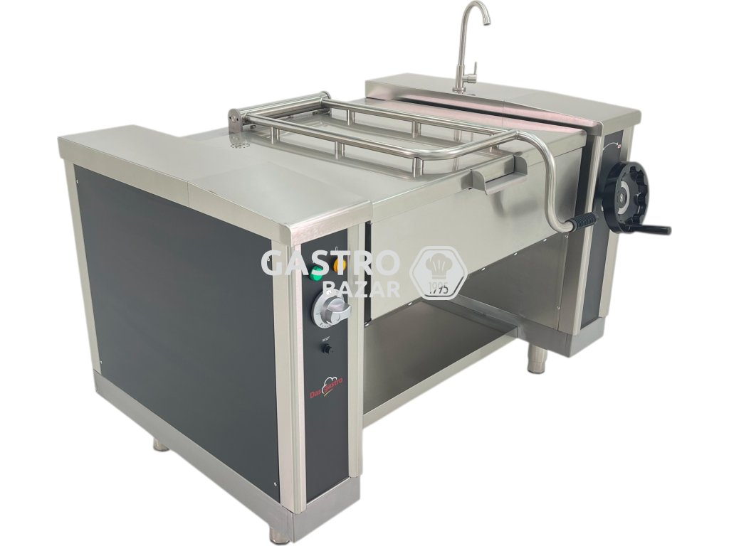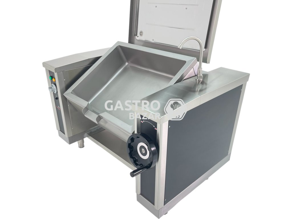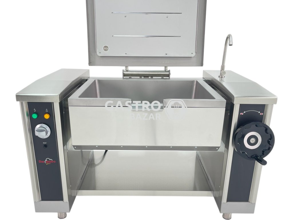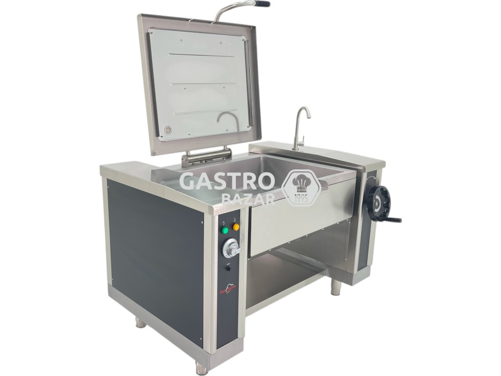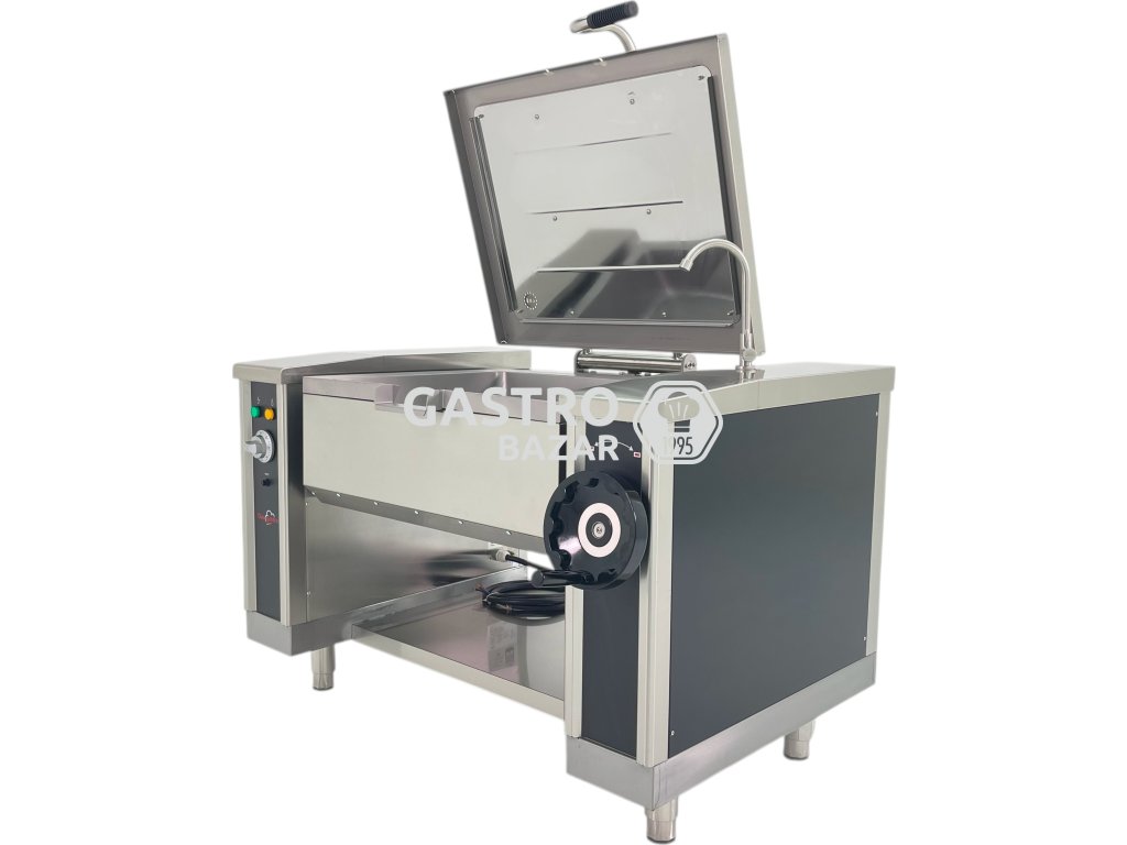 Pánev je vybavena mechanickým kolem pro snadné a bezpečné vyklápění – bez složité elektroniky, která by mohla selhat. Robustní konstrukce a kvalitní materiály zajišťují dlouhou životnost i při každodenním zatížení.