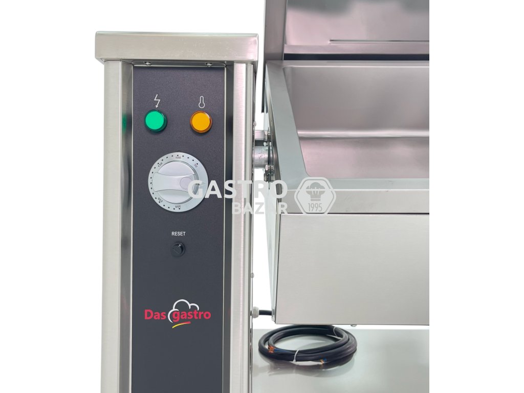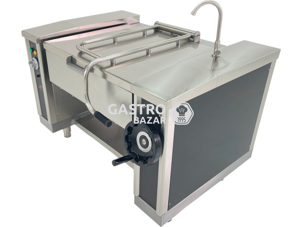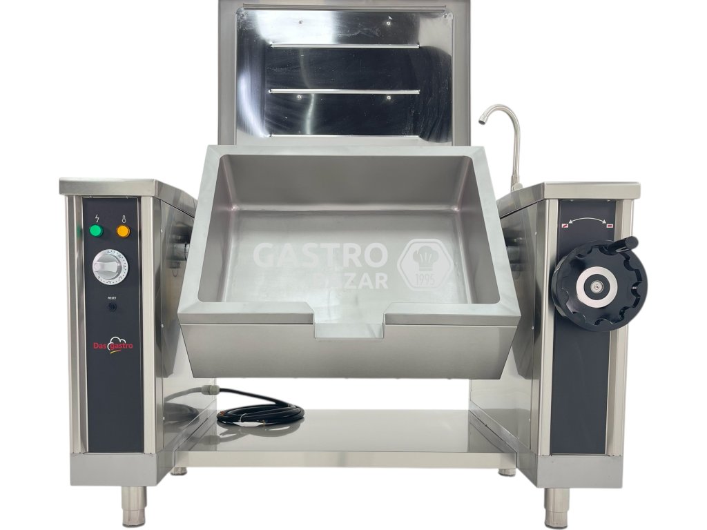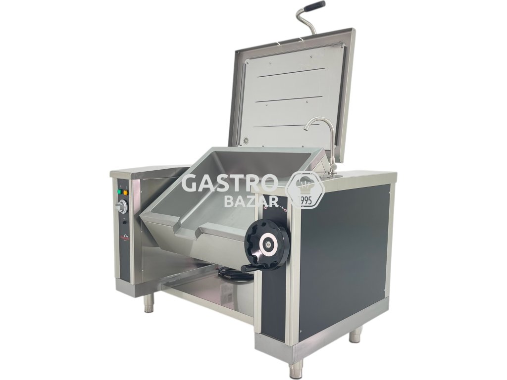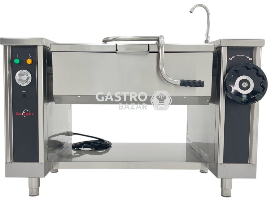 Pánev je vybavena mechanickým kolem pro snadné a bezpečné vyklápění – bez složité elektroniky, která by mohla selhat. Robustní konstrukce a kvalitní materiály zajišťují dlouhou životnost i při každodenním zatížení.