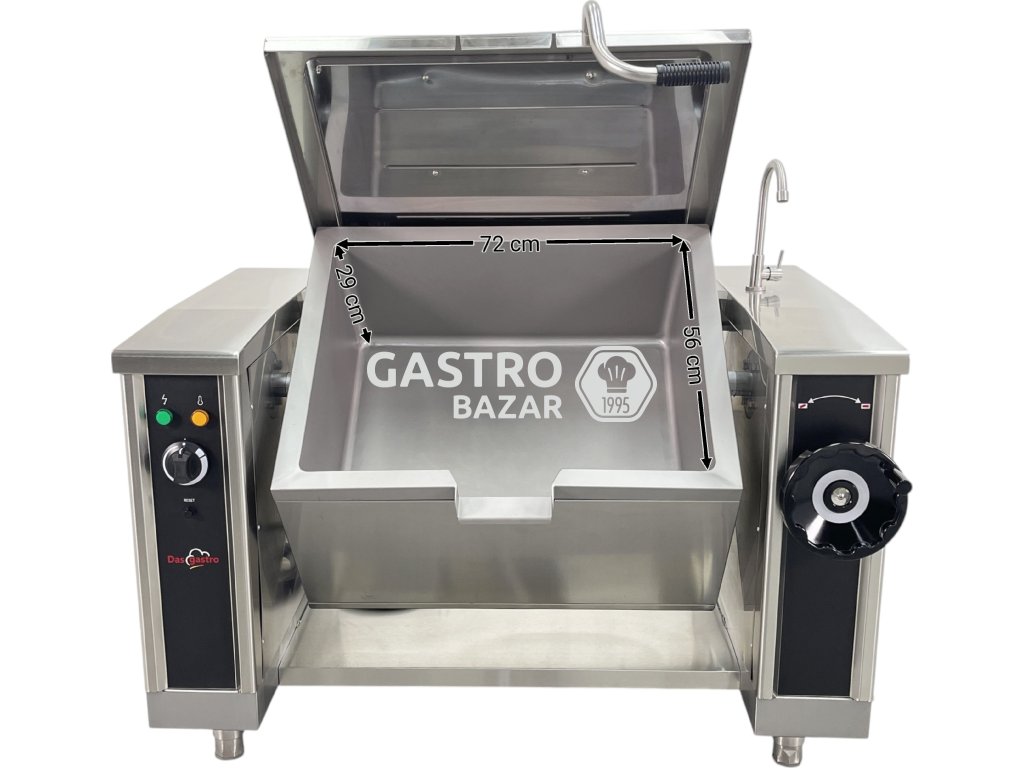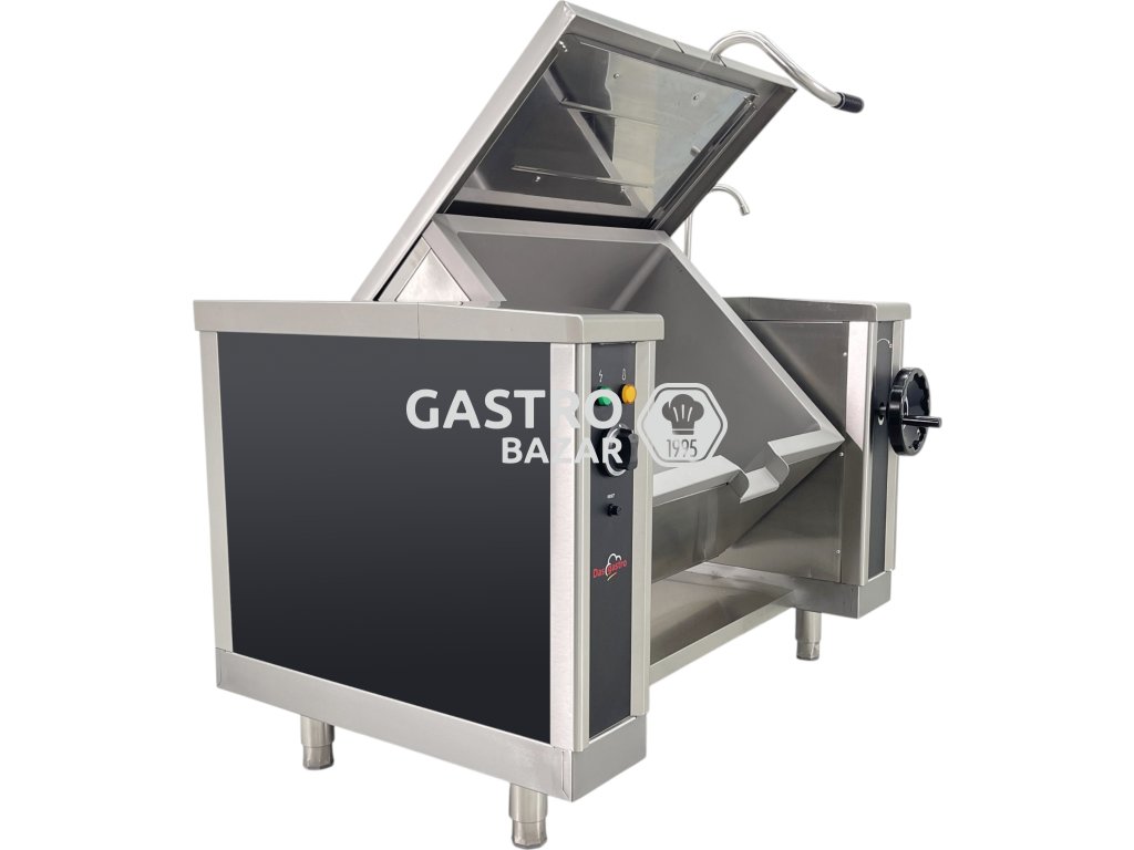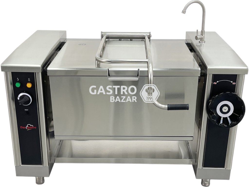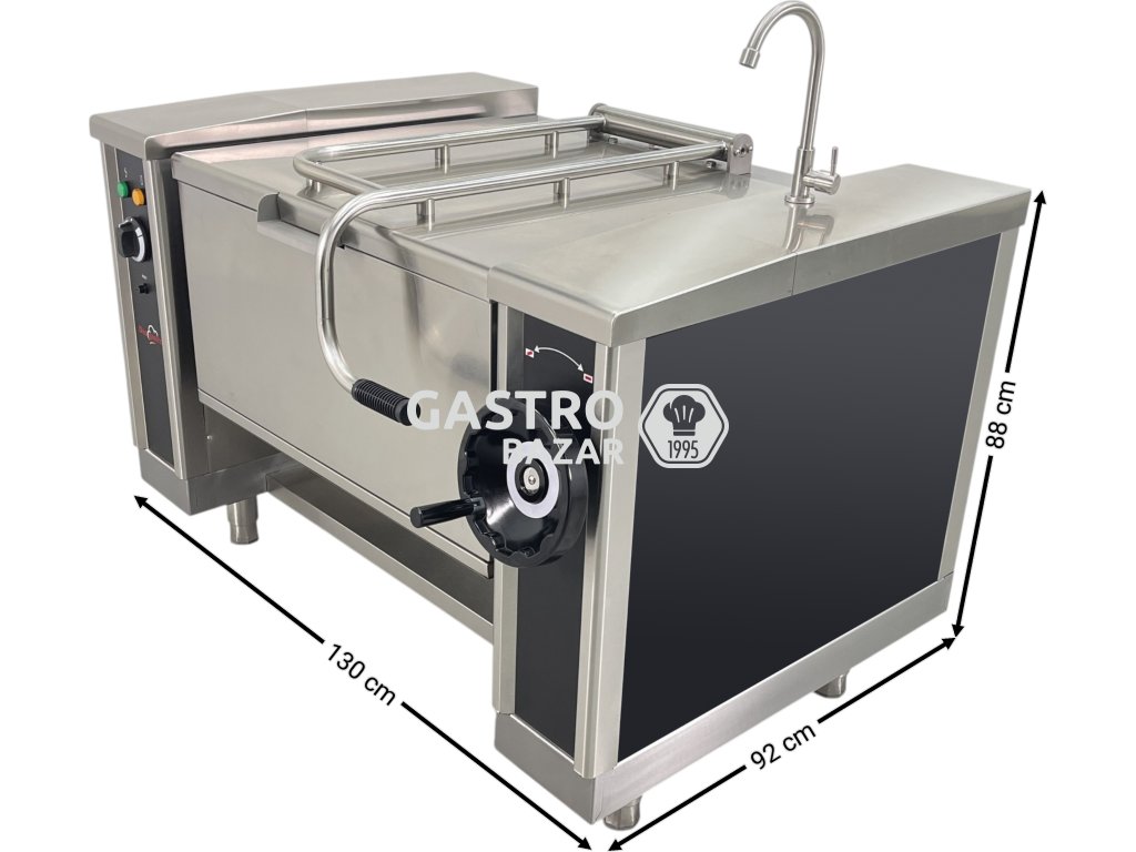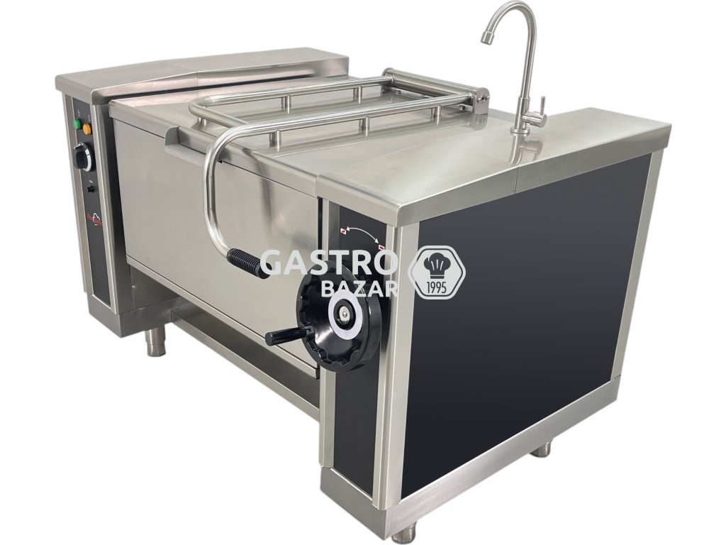 Pánev je vybavena mechanickým kolem pro snadné a bezpečné vyklápění – bez složité elektroniky, která by mohla selhat. Robustní konstrukce a kvalitní materiály zajišťují dlouhou životnost i při každodenním zatížení.