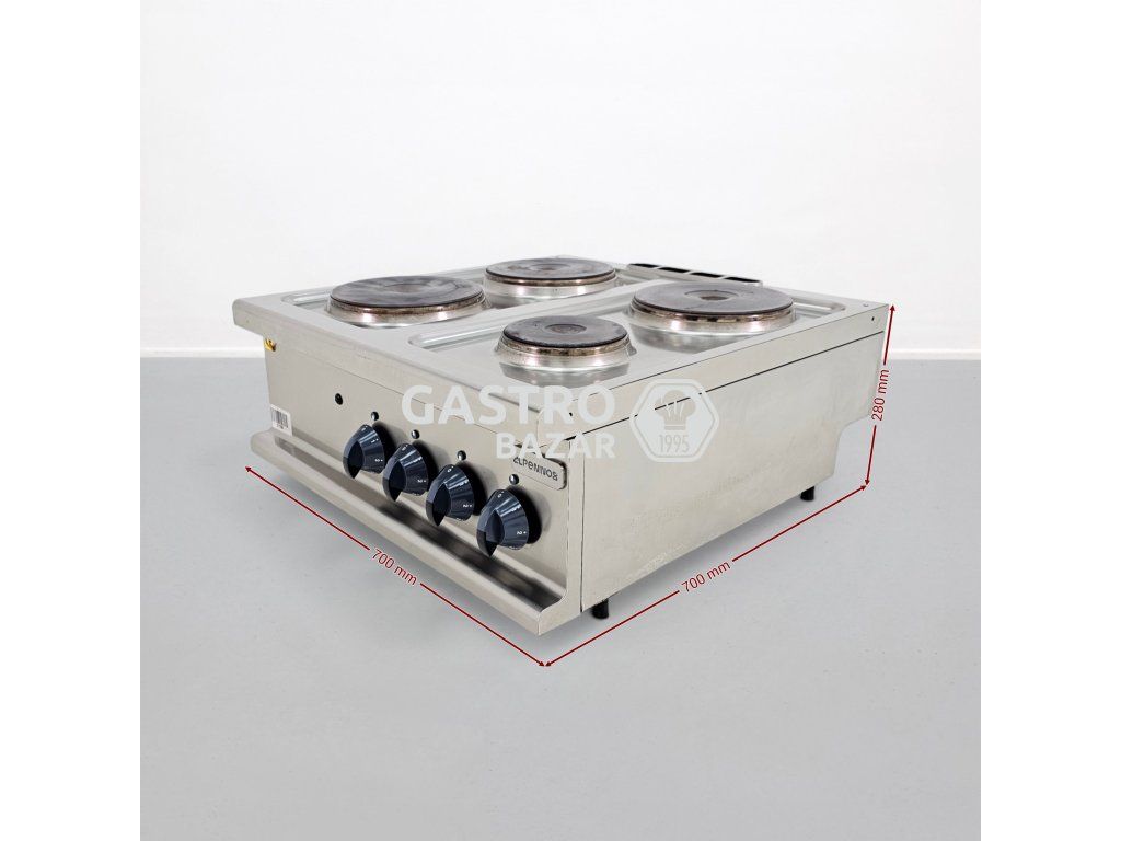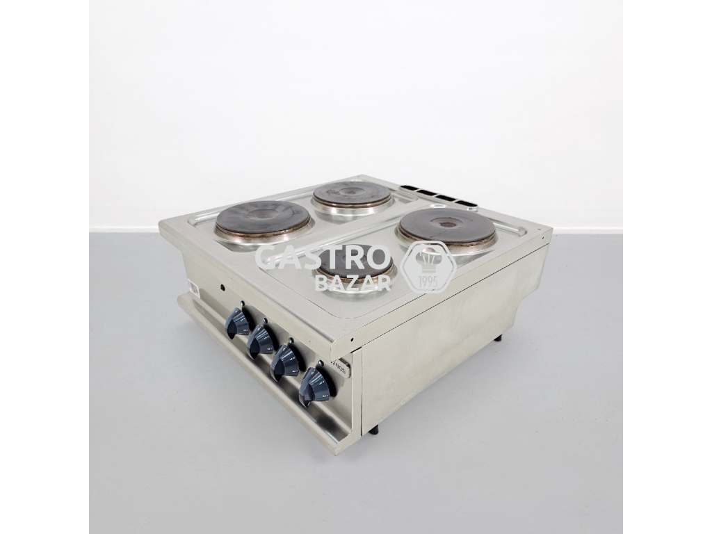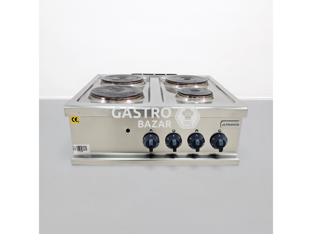 Profesionální elektrický gastro sporák Alpeninox je určen pro použití v profesionálních kuchyních. Díky 4 kruhovým litinovým plotýnkám umožňuje současnou přípravu více pokrmů a je vhodný pro každodenní intenzivní provoz.