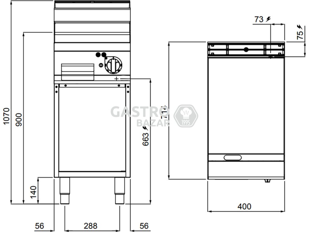 - Außenmaß B x T x H: 400 mm x 714 mm x 1.070 mm