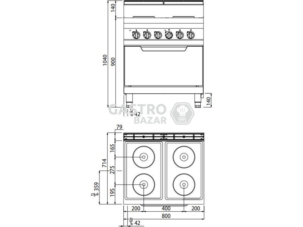 Elektrický sporák 4x plotýnka (10,4 kW) + elektrická statická trouba (7,5 kW)