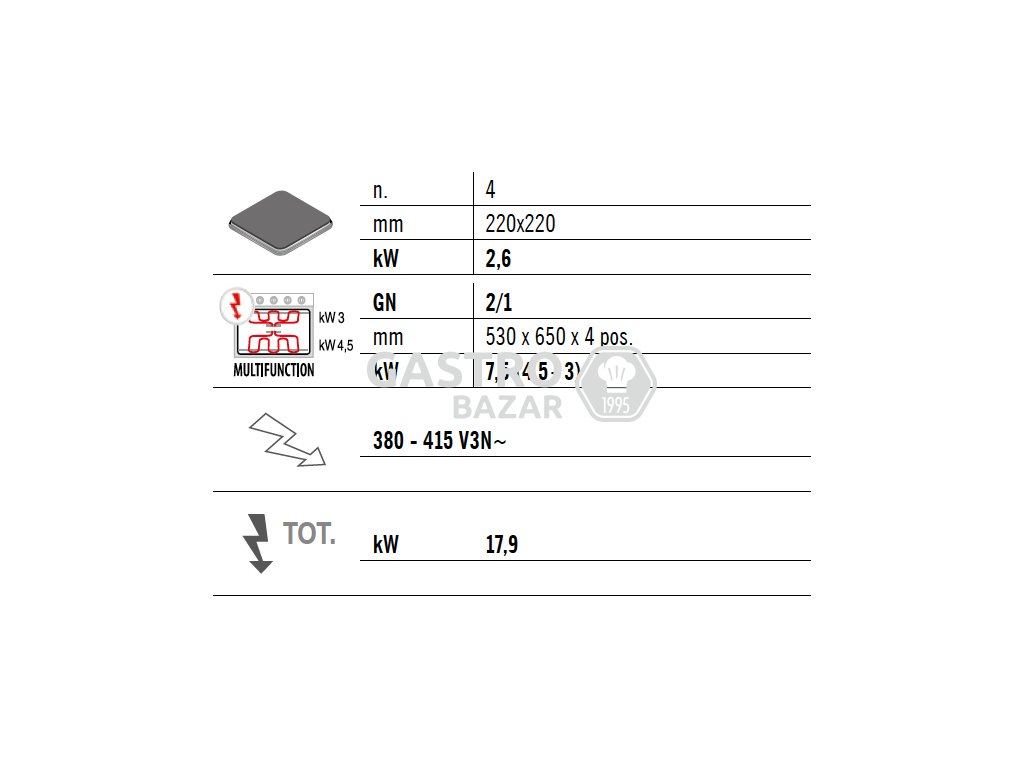 Elektrický sporák 4x plotýnka (10,4 kW) + statická elektrická trouba (7,5 kW)