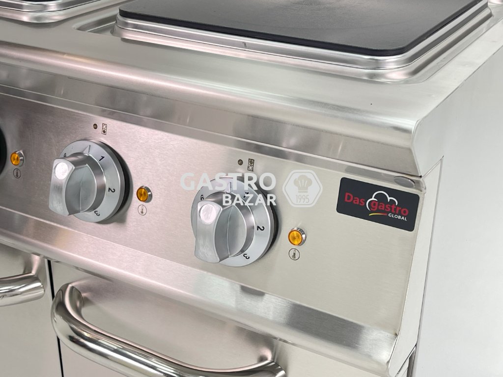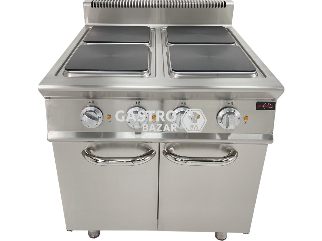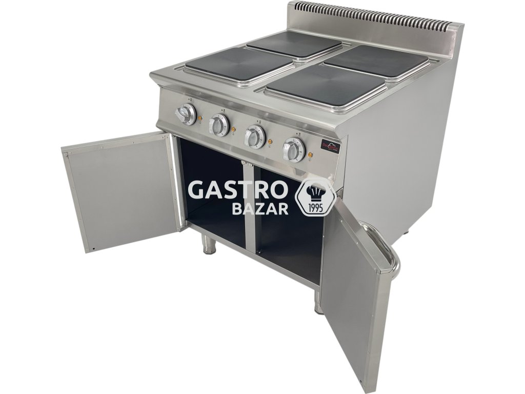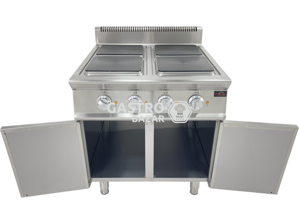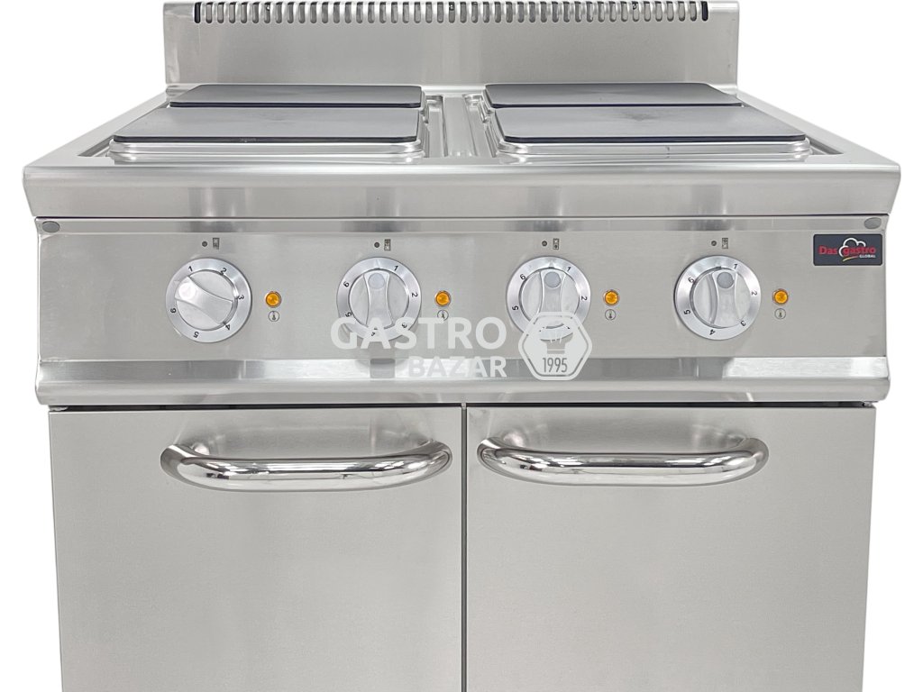 4 nezávislé elektrické plotny (čtvercové) – každá s vlastním spínačem a regulací výkonu.
