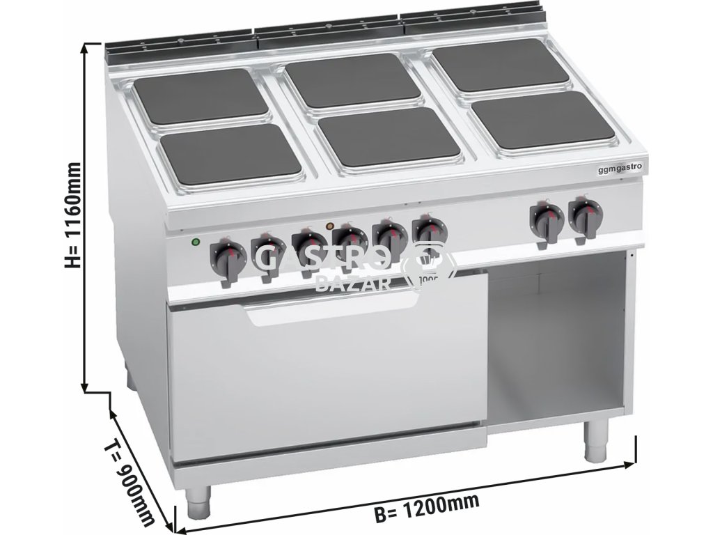 Elektrický sporák 6x plotýnka (21 kW) + statická elektrická trouba (7,5 kW)