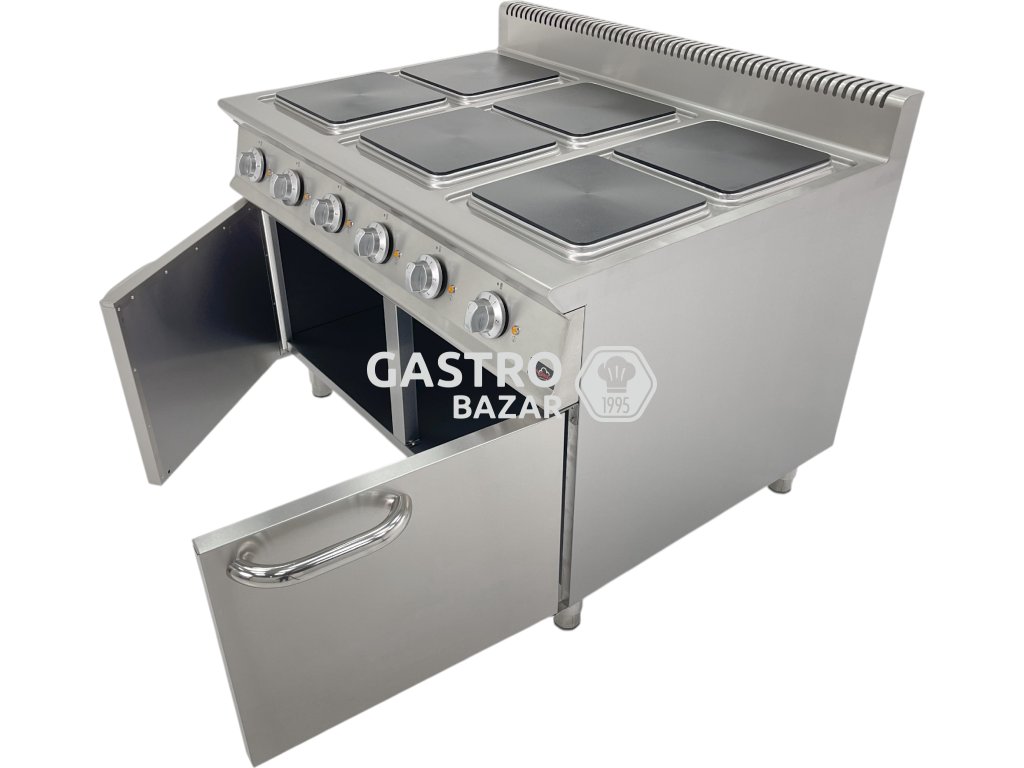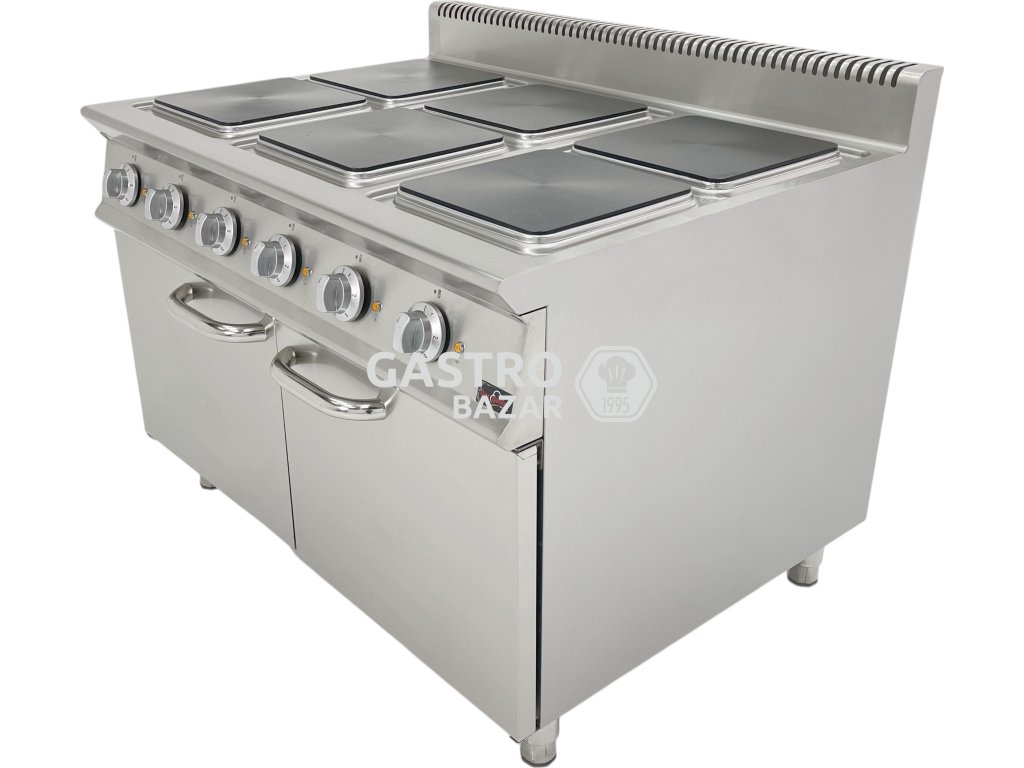 6 nezávislých elektrických čtvercových ploten – každá s vlastním spínačem a regulací výkonu.