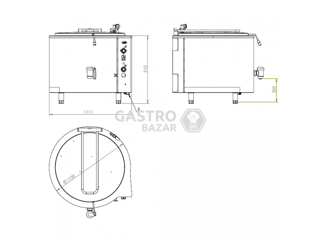 Elektrický varný kotel - 300L - nepřímý ohřev