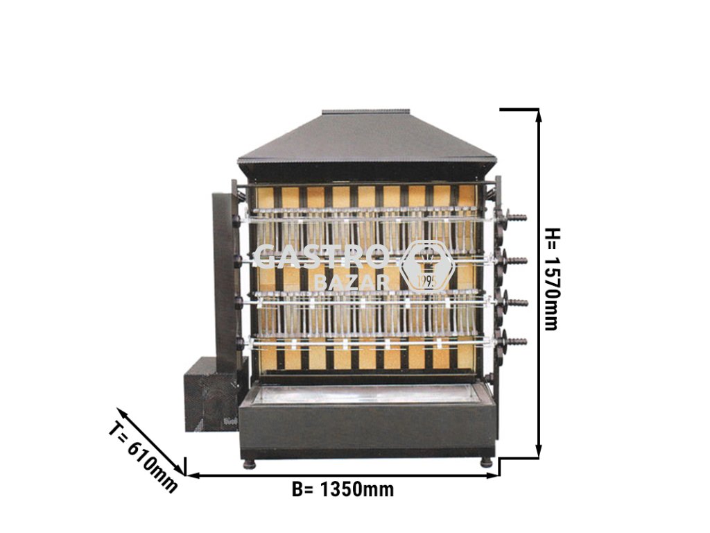 Gril na dřevěné uhlí - 4 jehly na 20 kuřat