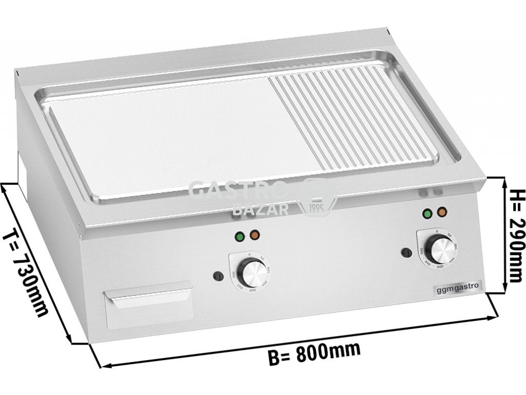 Grilovací deska-1/2 hladká a 1/2 drážkovaná (9,6 kW)
