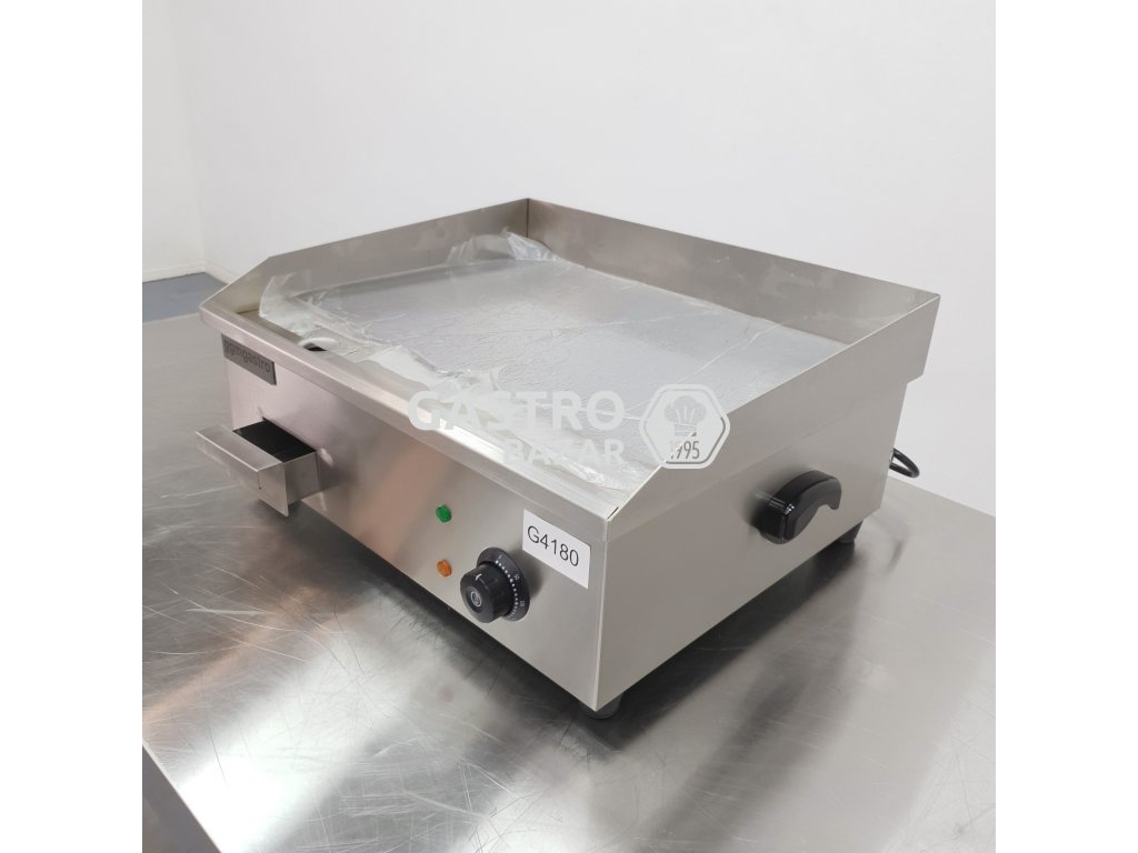 Nový, nikdy nepoužitý stolní gril. Mastnota na povrchu je ochranný film od výrobce - nejedná se o nečistotu.