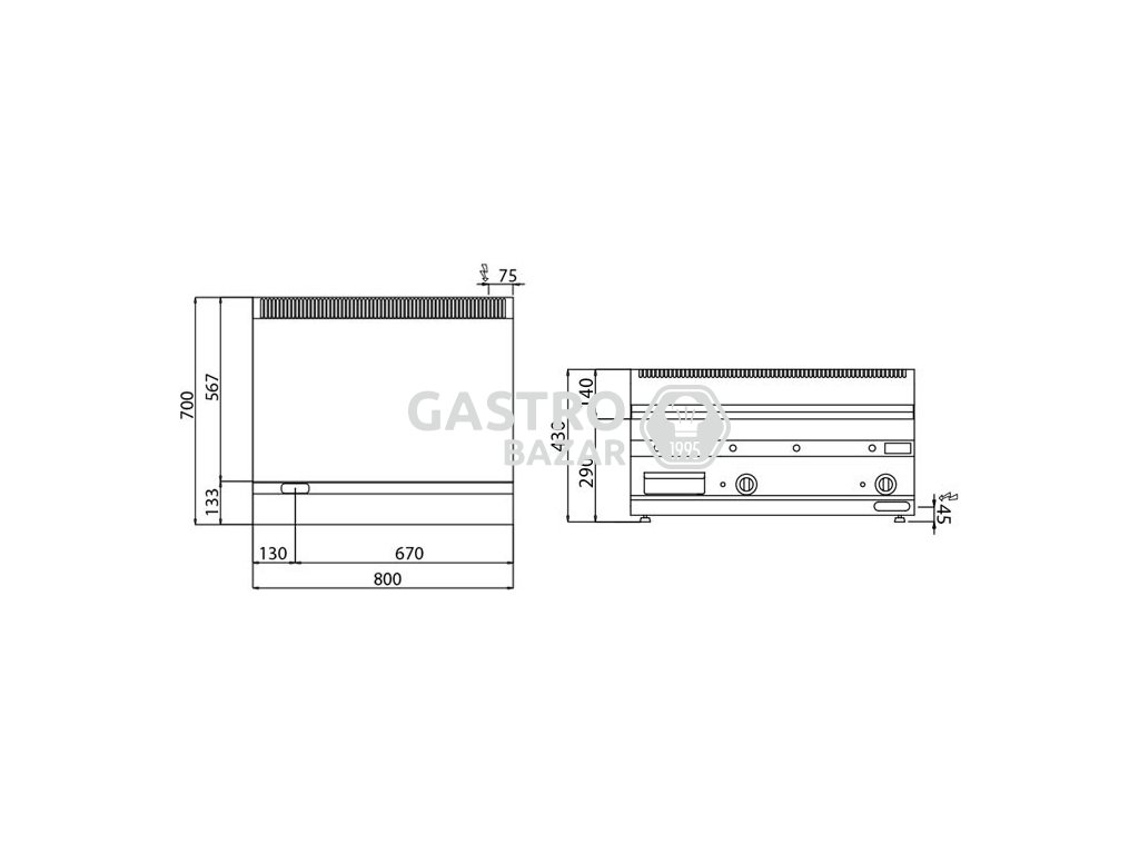 Grilovací deska- hladká (8 kW) včetně podestavby