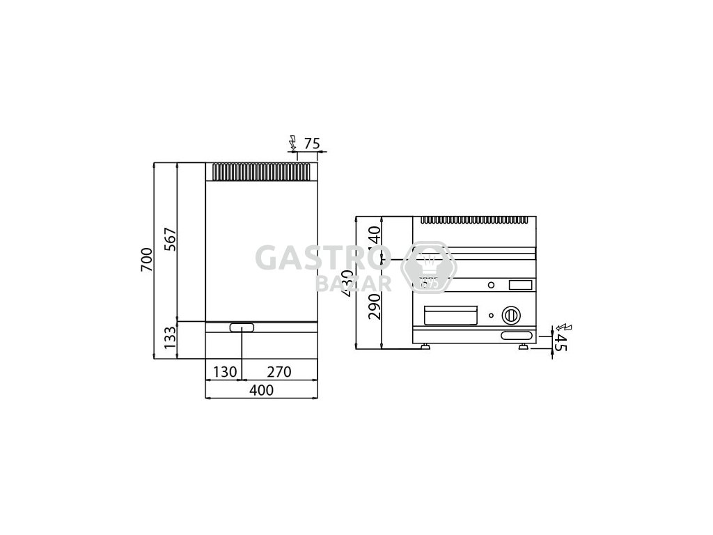 Grilovací deska- rýhovaná (4 kW) včetně podestavby