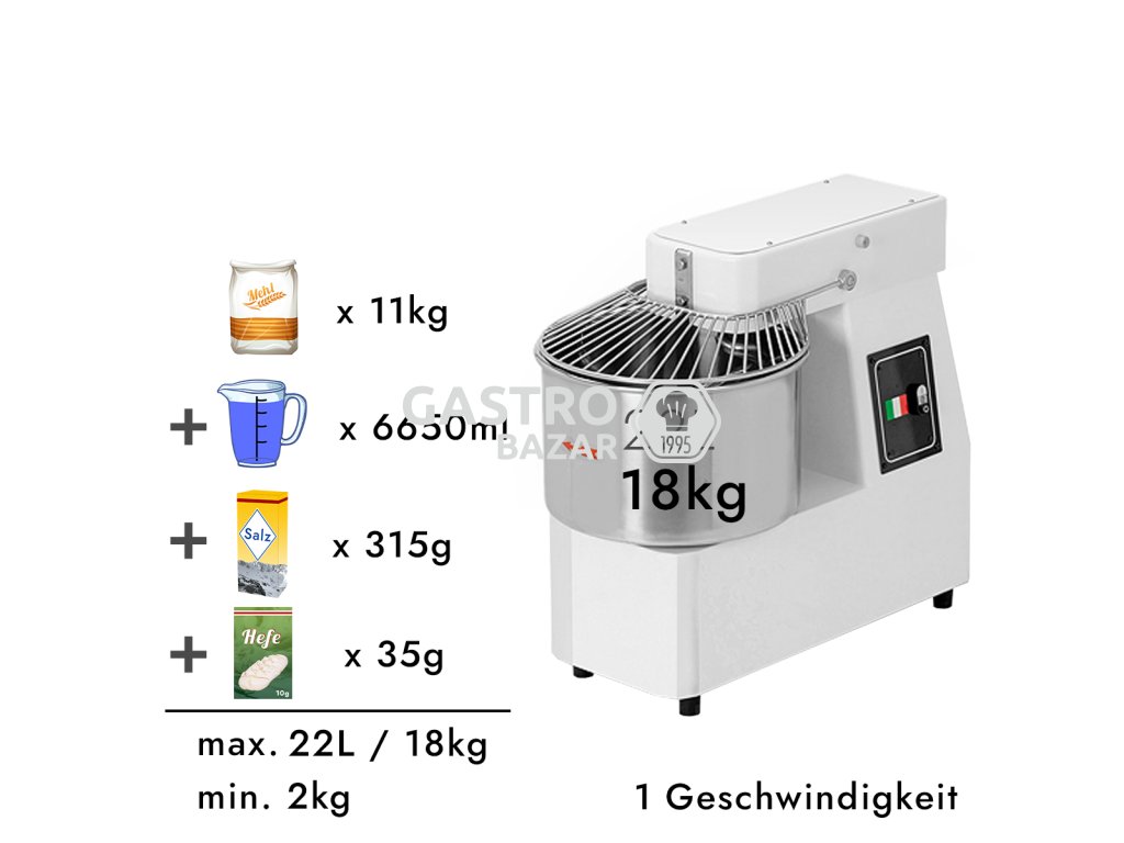Hnětač těsta - 22 litrů / 18 kg