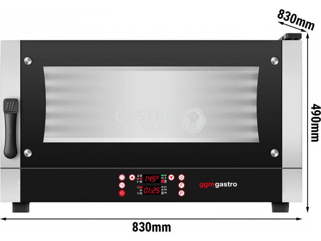- Vzdálenost mezi plechy na pečení: 75 mm