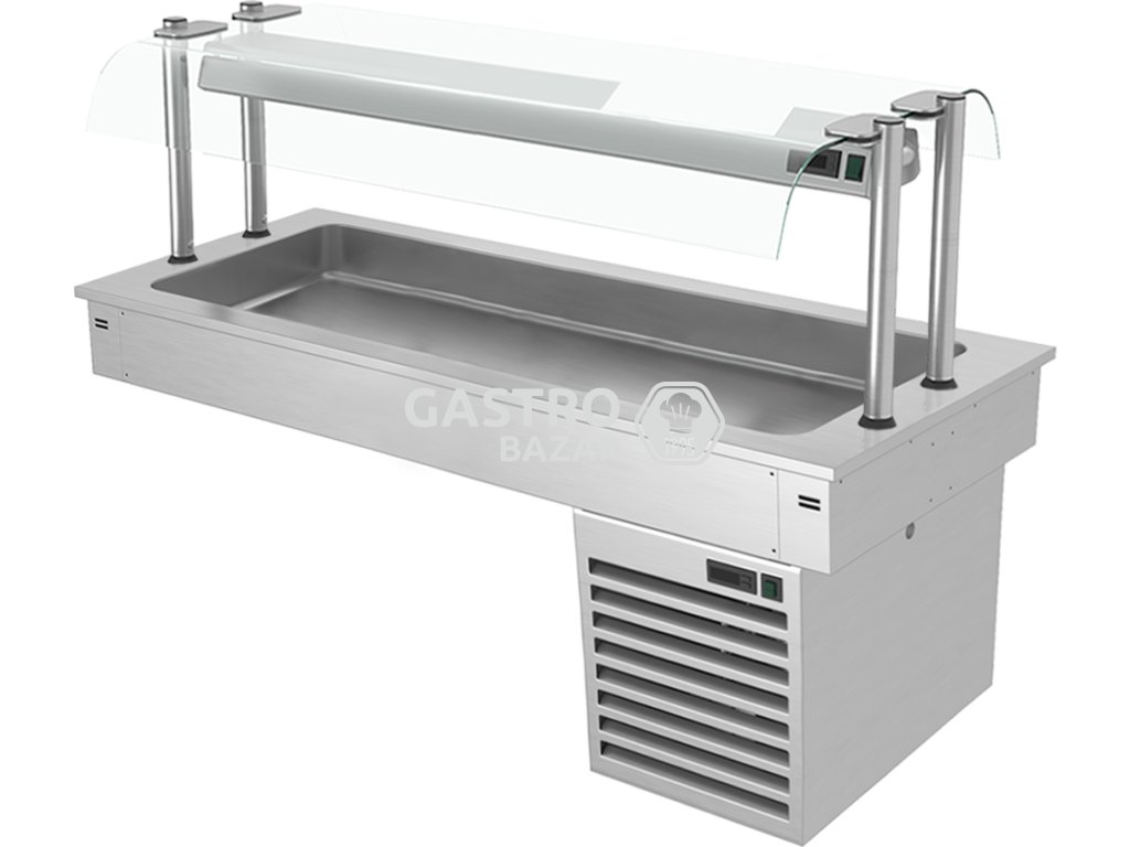 s poličkou a oboustrannou skleněnou zábranou proti kýchání, GN nádoby o hloubce max. 100 mm