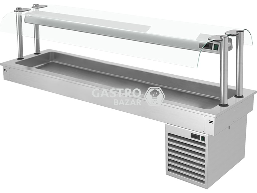 s poličkou a oboustrannou skleněnou zábranou proti kýchání, GN nádoby o hloubce max. 100 mm