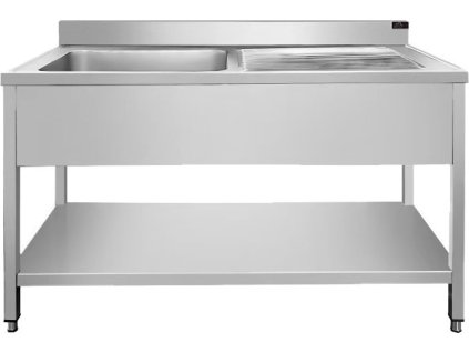 Mycí stůl PREMIUM z nerezové oceli - se spodní policí - 1,4 m - 1 dřez vpravo - D 50 x Š 40 x H 25 cm