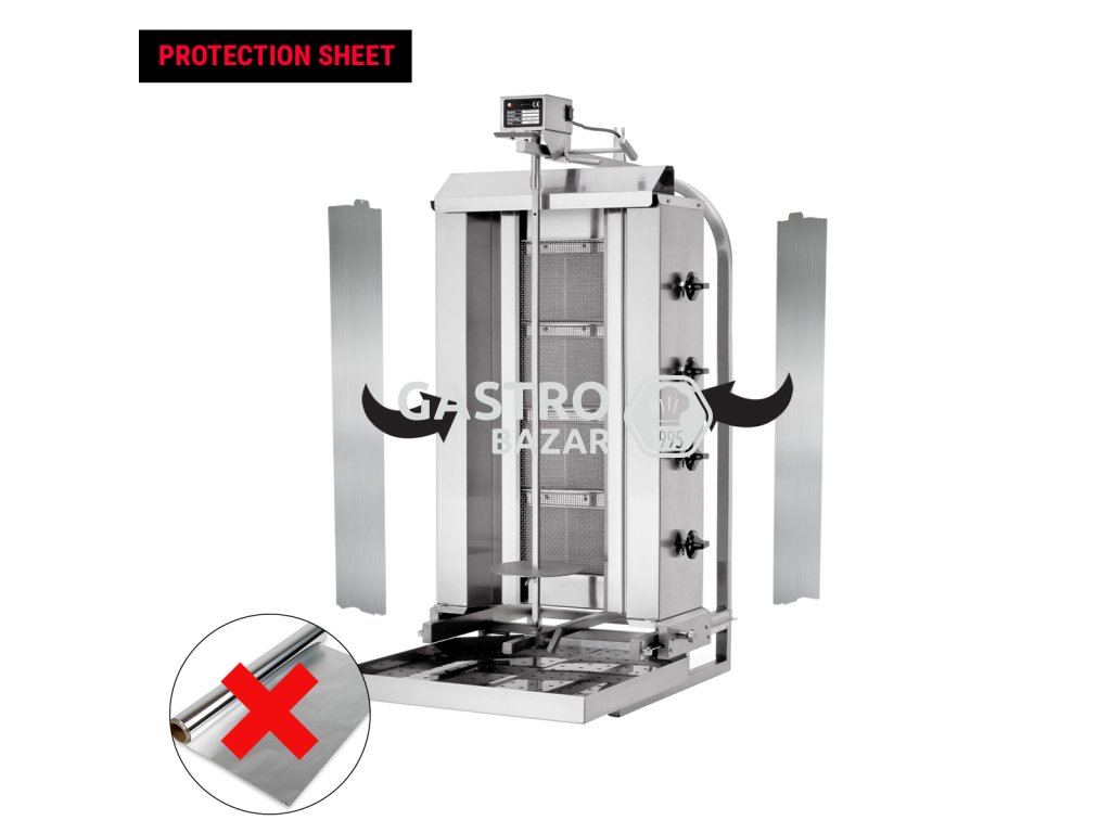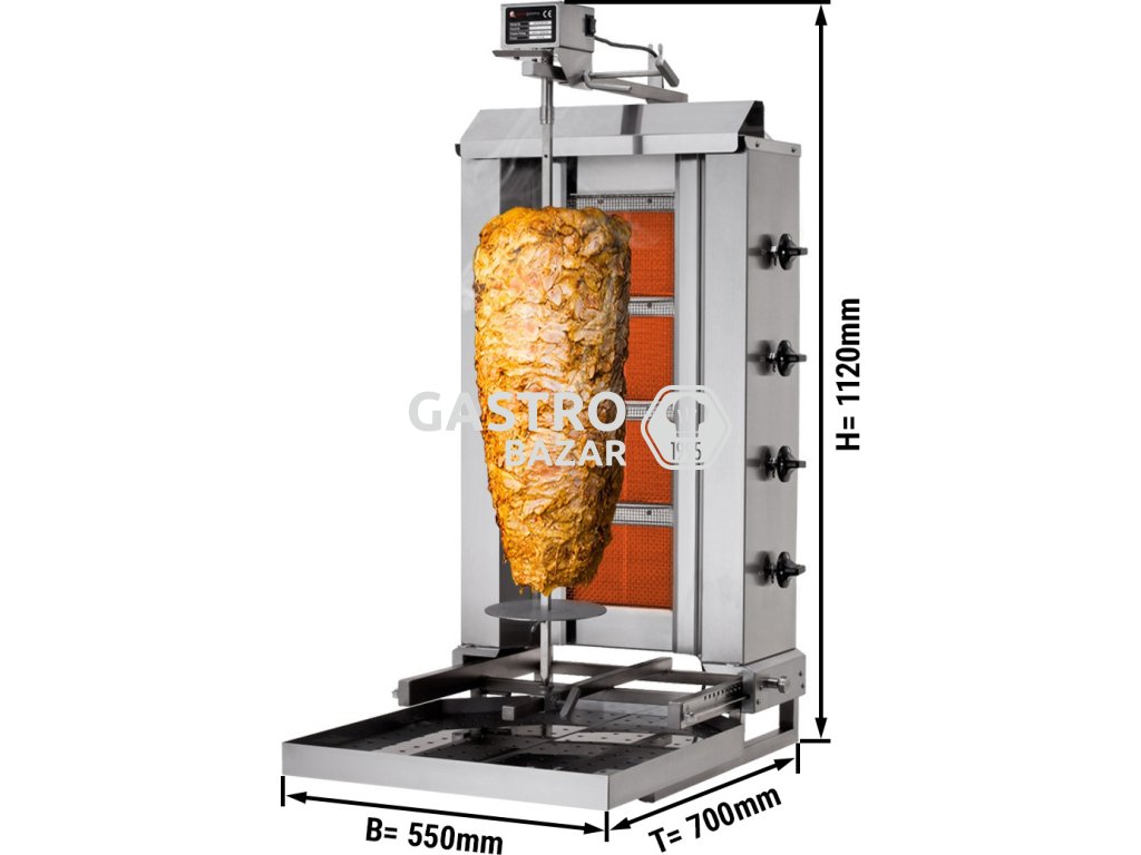 - Kebab gril- 4 pohyblivé hořáky maximální hmotnost 60 kg