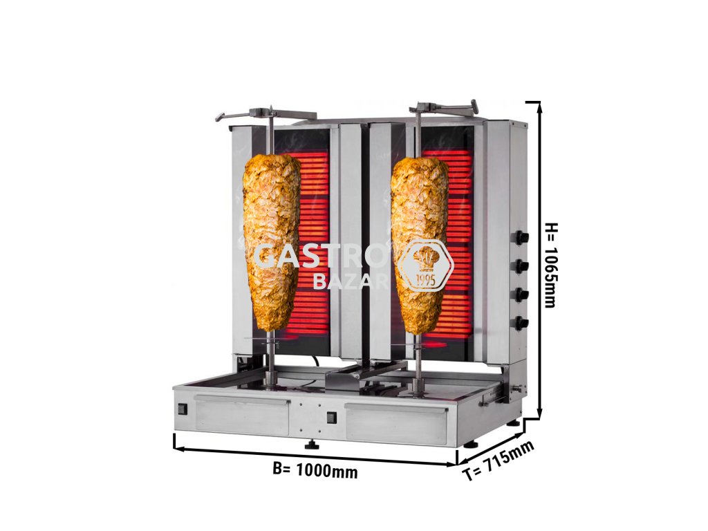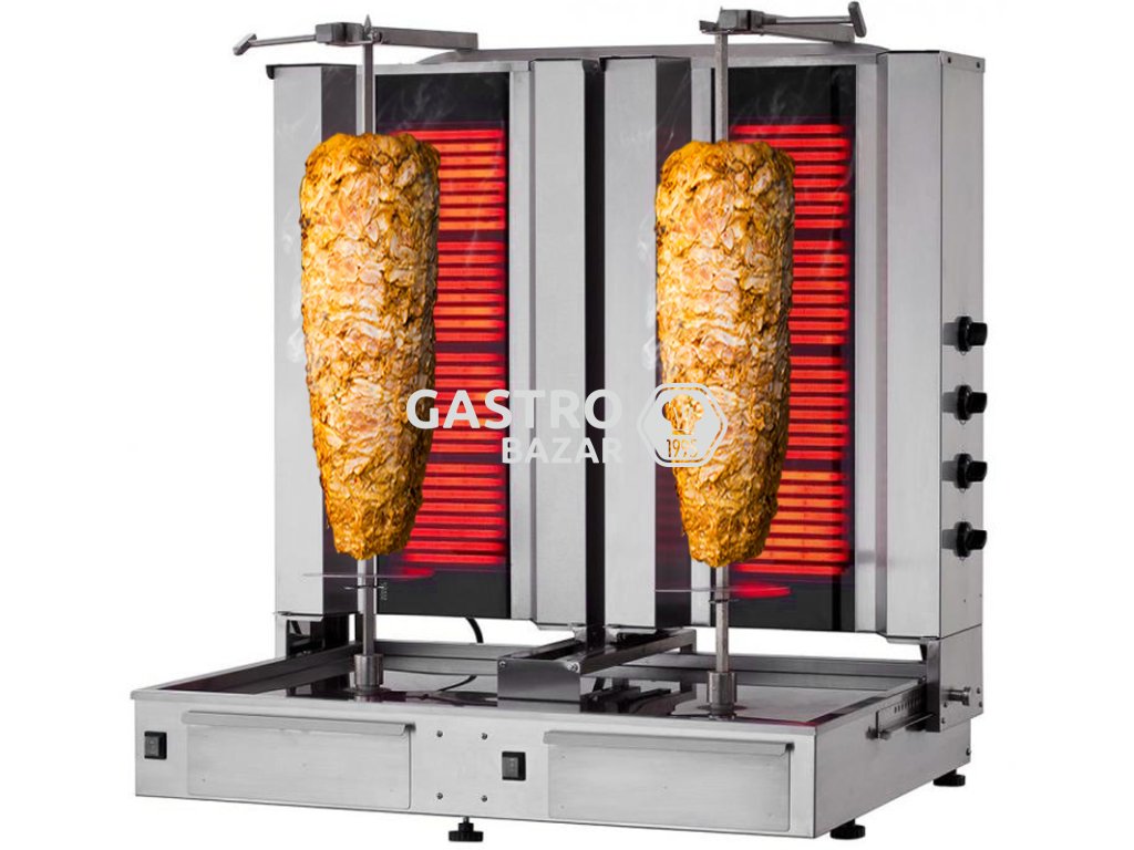- Kebab gril elektrický- 4+4 hořáky - maximální hmotnost 120 kg