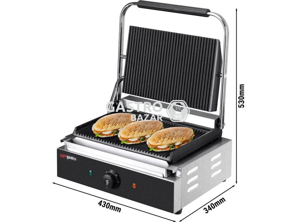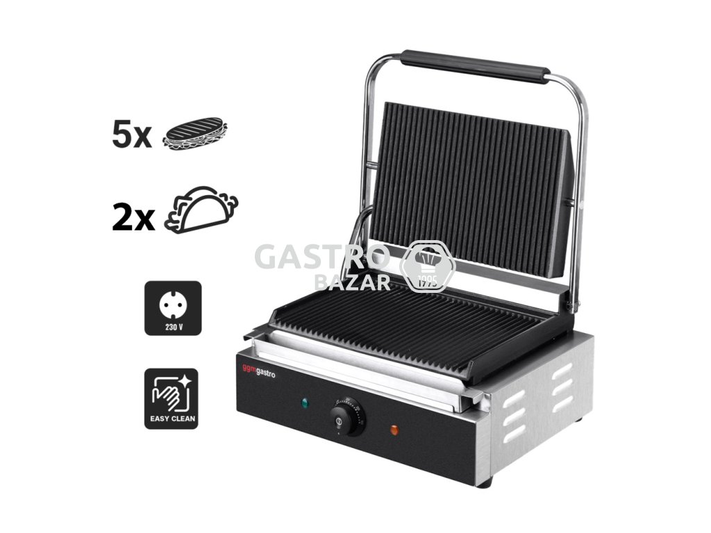 Kontaktní gril 0,43 m - rýhovaná horní a spodní část