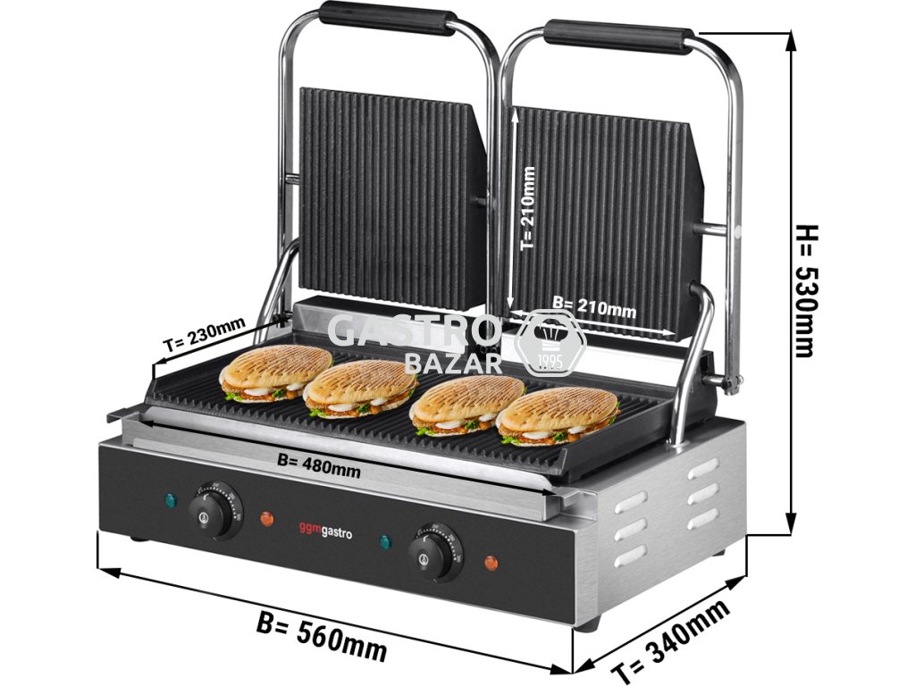 Kontaktní gril 0,57 m - horní a dolní drážka