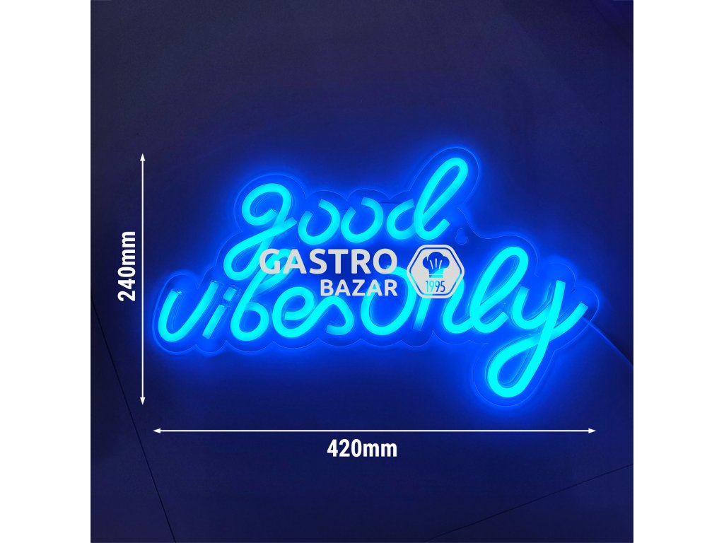 Světelný nápis LED - Good Vibes Only - modrý - 420x240mm