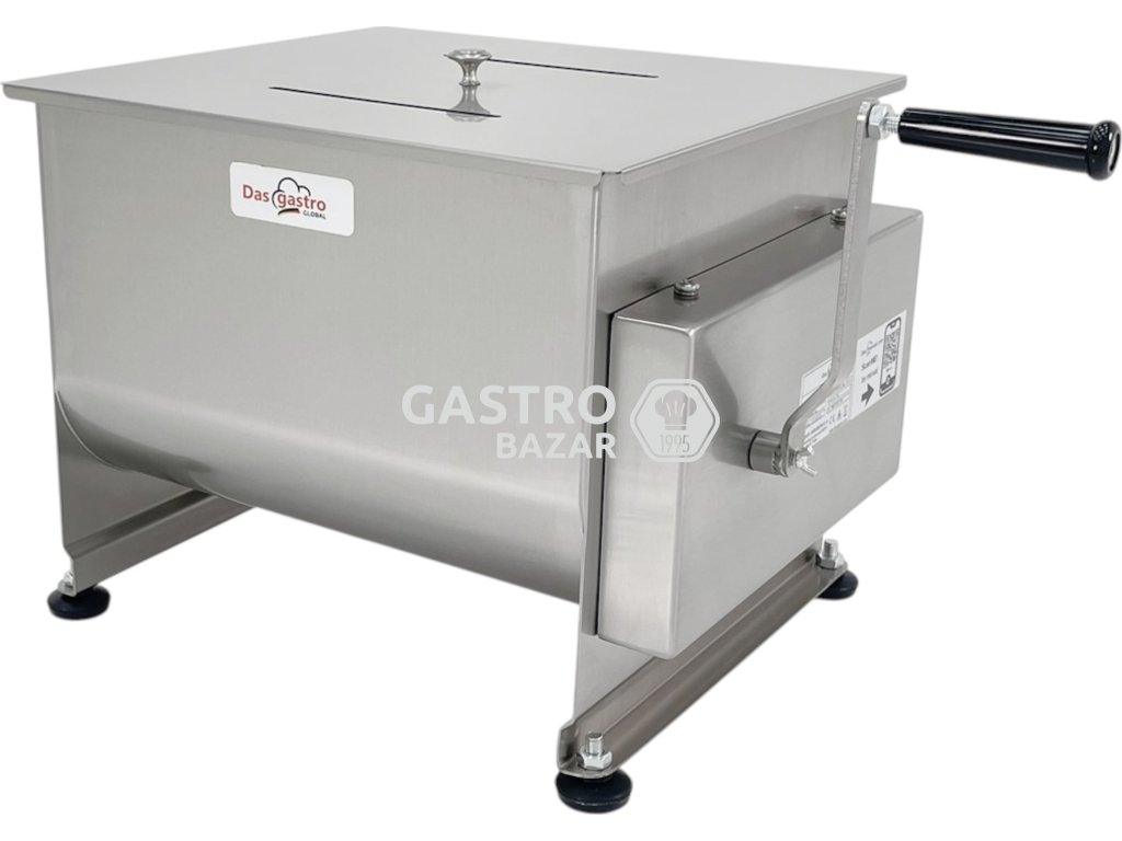 Profesionální ruční míchačka na maso MM30 je určena pro efektivní a rovnoměrné promíchání mletého masa s kořením, tukem a dalšími přísadami. Díky dvouosému míchacímu systému zajišťuje dokonalou homogenitu směsi bez poškození struktury masa. Tento model s větší kapacitou 30 litrů je ideální pro střední masné provozy, uzenářské dílny a gastronomické výrobny, které kladou důraz na kvalitu a výkon.