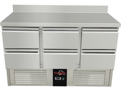Chladící stůl / přípravný stůl 1,37 mx 0,7 m - s 6 šuplíky a zadním lemem
