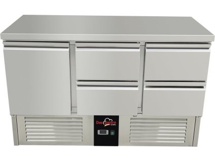 Chladící stůl / přípravný stůl 1,37 mx 0,7 m - se 1 dveřmi uprostřed a 4 šuplíky