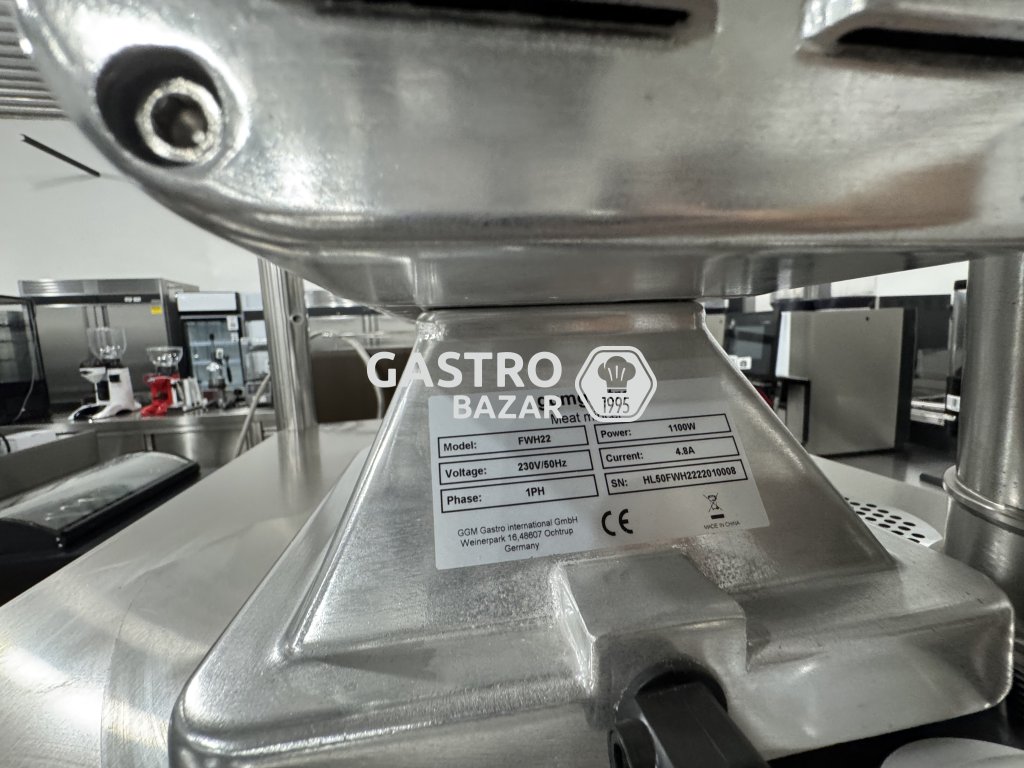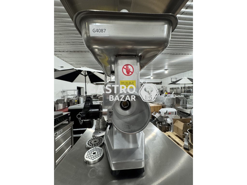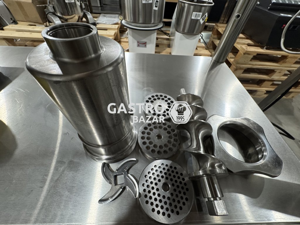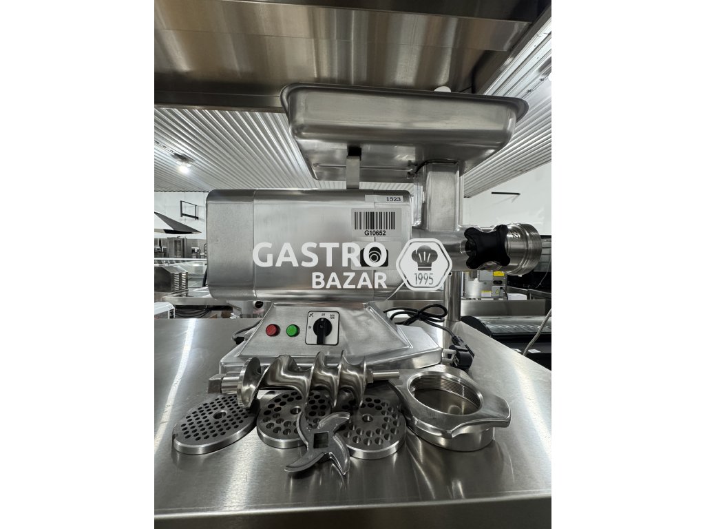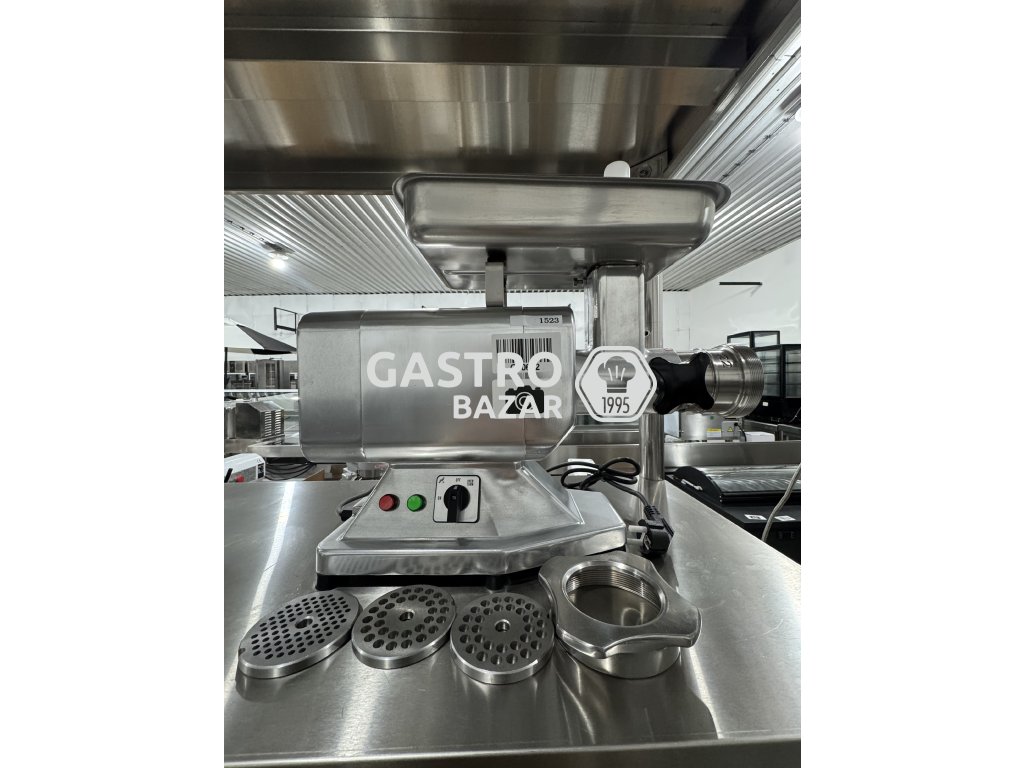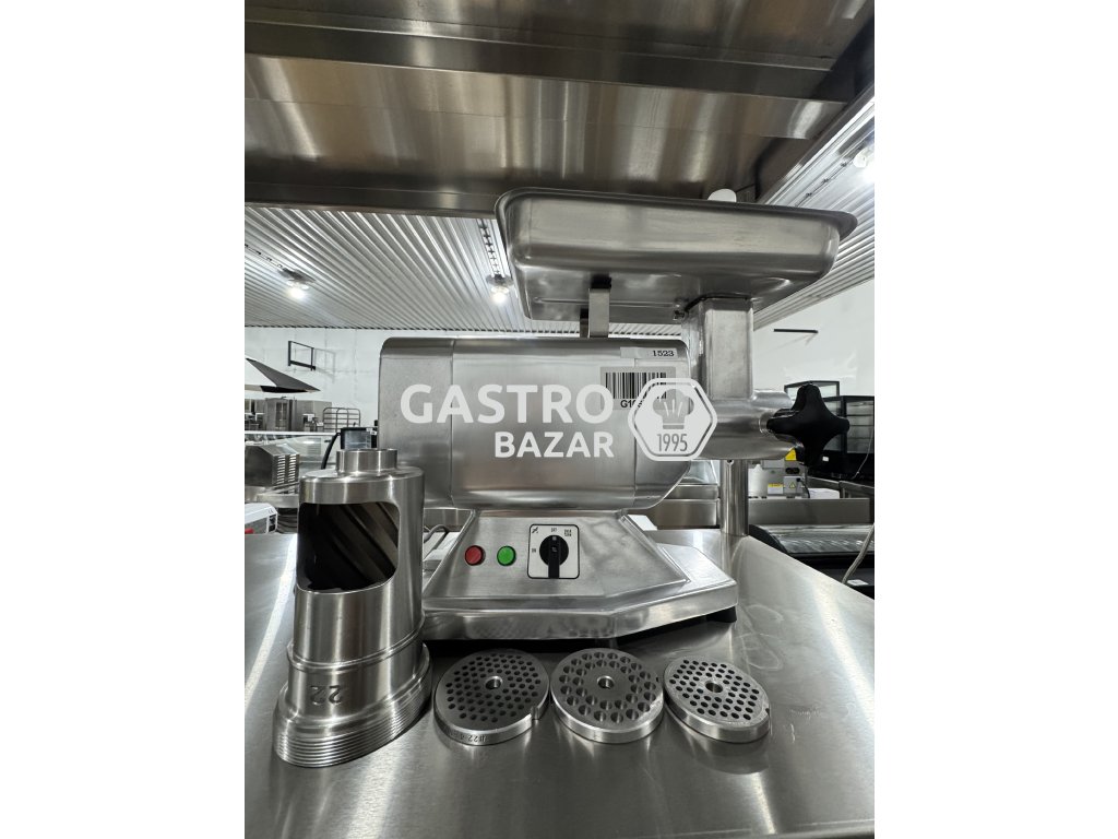 Nerezový mlýnek na maso ve vysoce odolném provedení pro extrémní zatížení. Nabízí tichý chod, snadné ovládání, kompaktní rozměry a jednoduché čištění. Kapacita až 220 kg/h. Stabilitu zajišťují gumové nožičky.