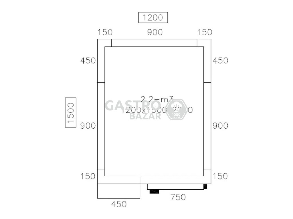 - Außenmaß B x T x H: 1.200 mm x 1.500 mm x 2.010 mm