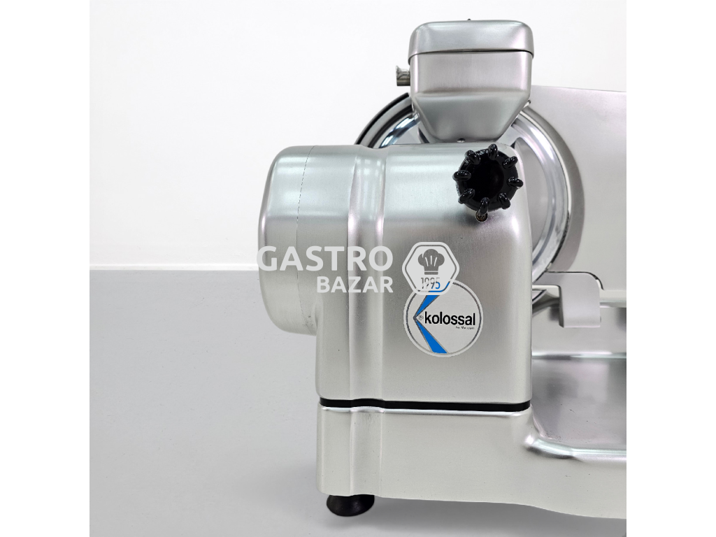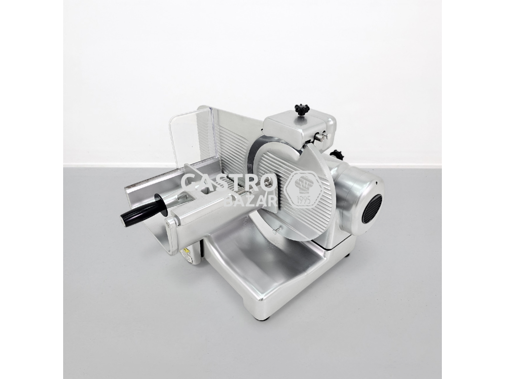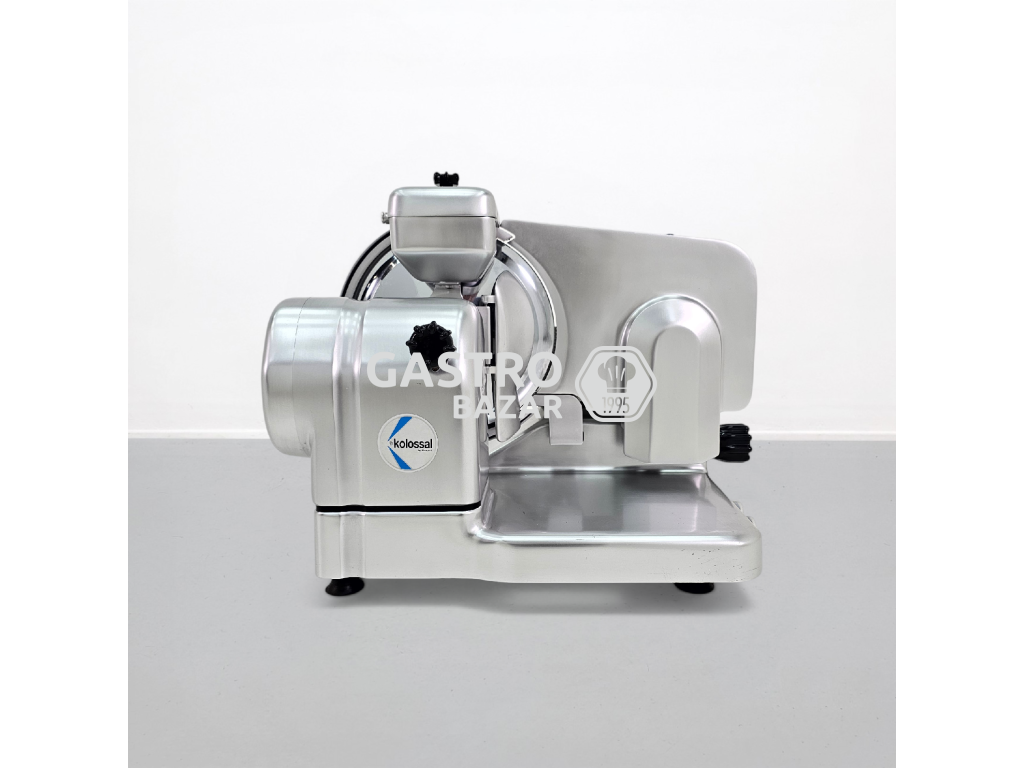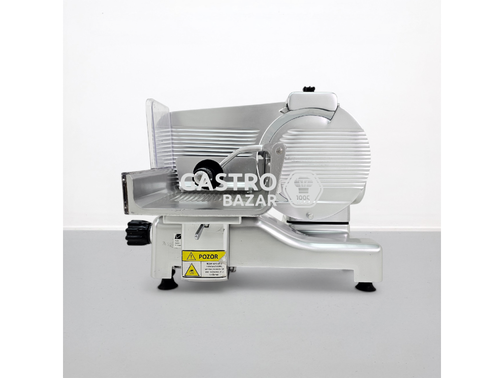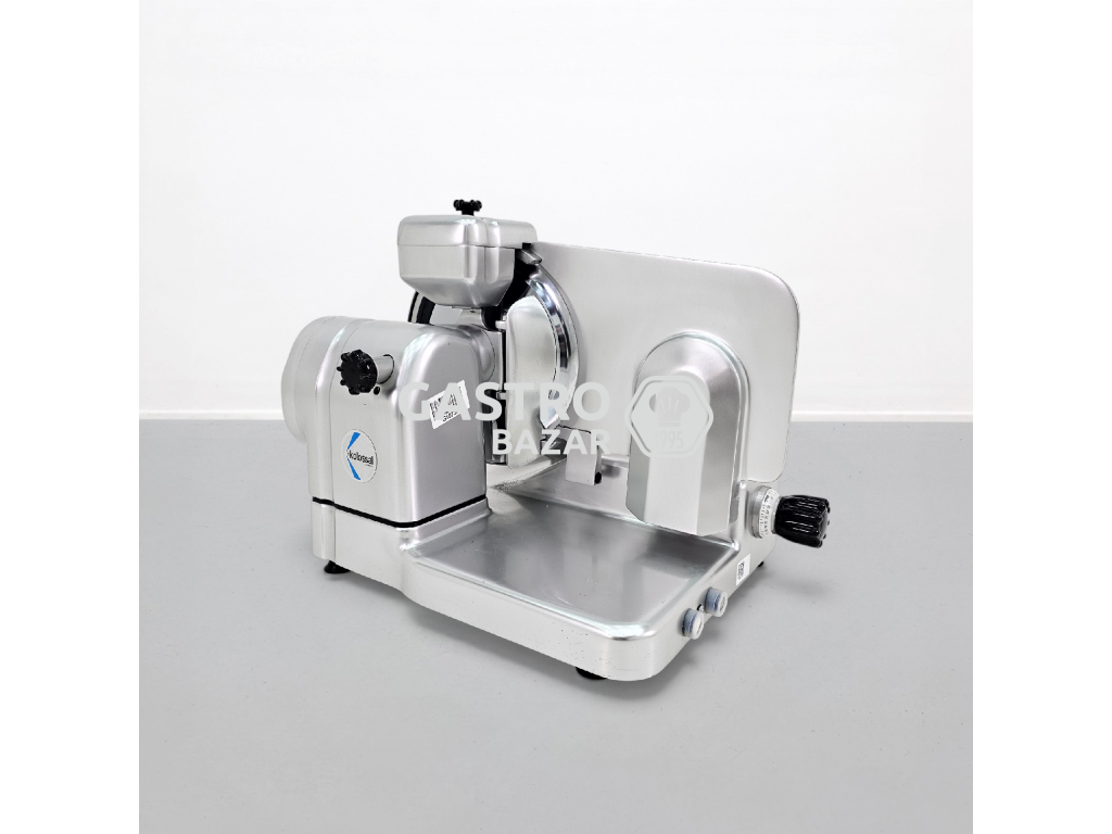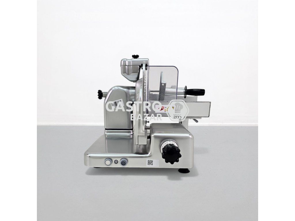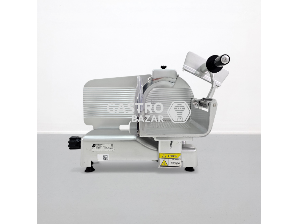 Stroj je vyroben z nerezové oceli, je vhodný pro vysokou zátěž a umožňuje přesné krájení uzenin i sýrů. Součástí zařízení je také integrované brusné zařízení pro snadnou údržbu nože.