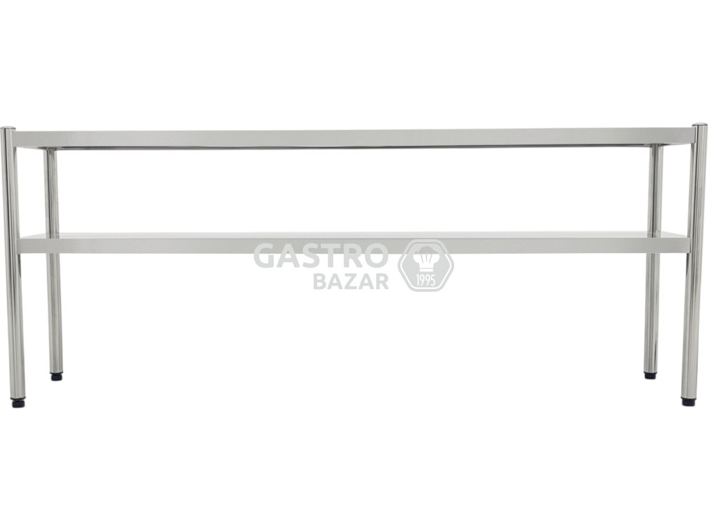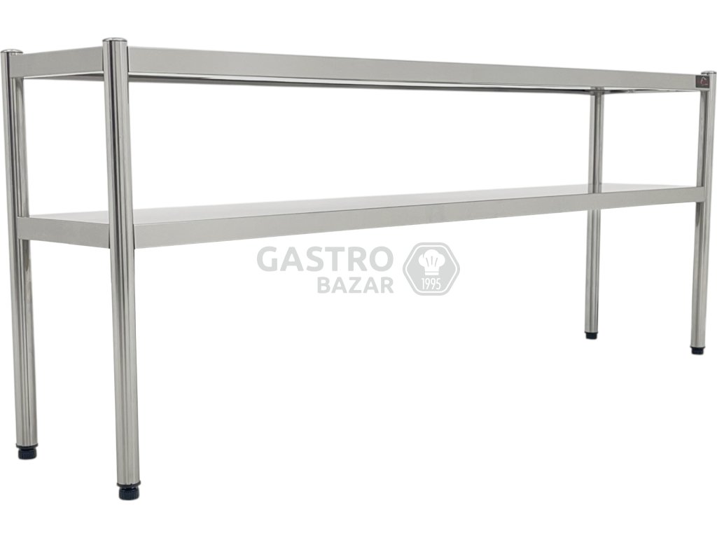 Funkční a robustní nástavná police určená pro profesionální kuchyně a gastronomické provozy. Ideální pro instalaci nad pracovní stoly, kde umožňuje přehledné a hygienické uskladnění nádobí, surovin či pomůcek. Dvoupolicové provedení zvyšuje využitelný prostor bez omezení pracovní plochy.