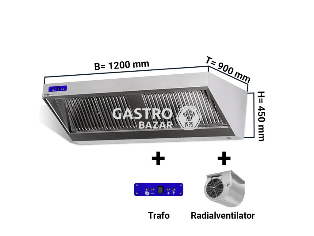 Nástěnná digestoř 1,2 m - s motorem, ovladačem, filtrem a světlem- hloubka 900 mm