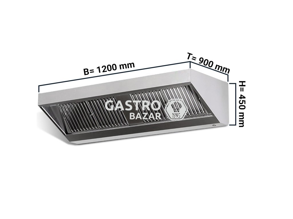 Nástěnná digestoř 1,2 m - s filtrem a světlem- hloubka 900 mm