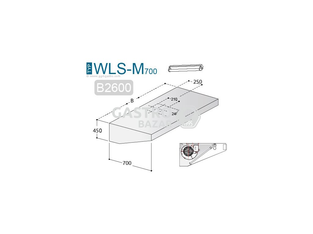 Nástěnná digestoř 2,6 m - s motorem, regulátorem, filtrem a svítidlem