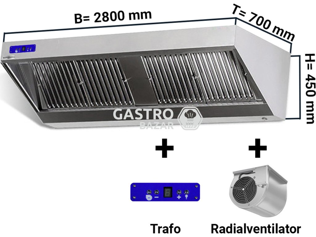 Nástěnná digestoř 2,8 m - s motorem, ovladačem, filtrem a světlem- hloubka 700 mm