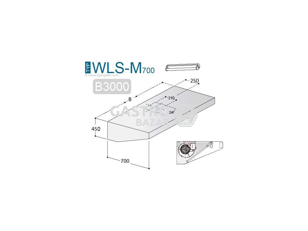 Nástěnná digestoř 3,0 m - s motorem, regulátorem, filtrem a svítidlem