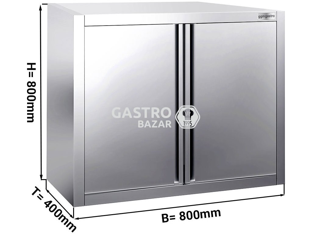 Nerezová nástěnná skříň 0,8 x 0,4m - s dveřmi - vysoká 0,8 m