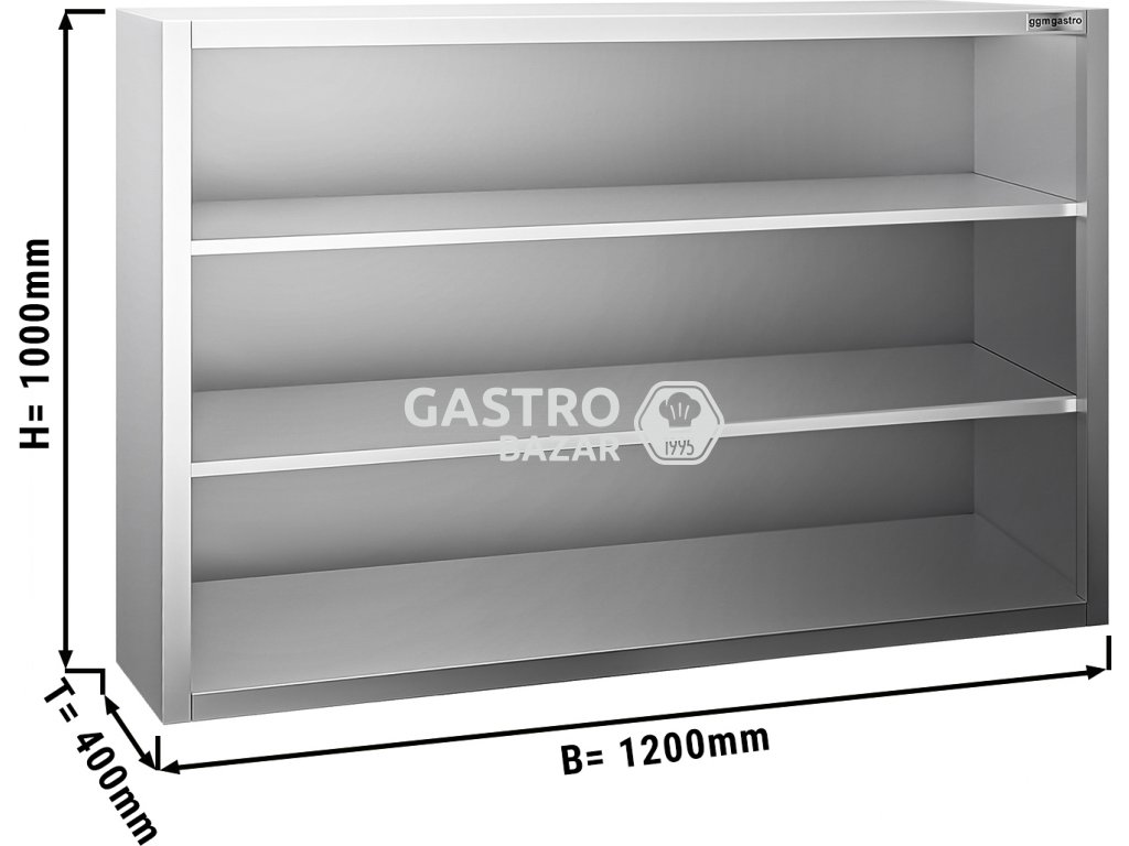 Nerezová nástěnná skříň 1,2 m - bez posuvných dveří - výška 1,0 m