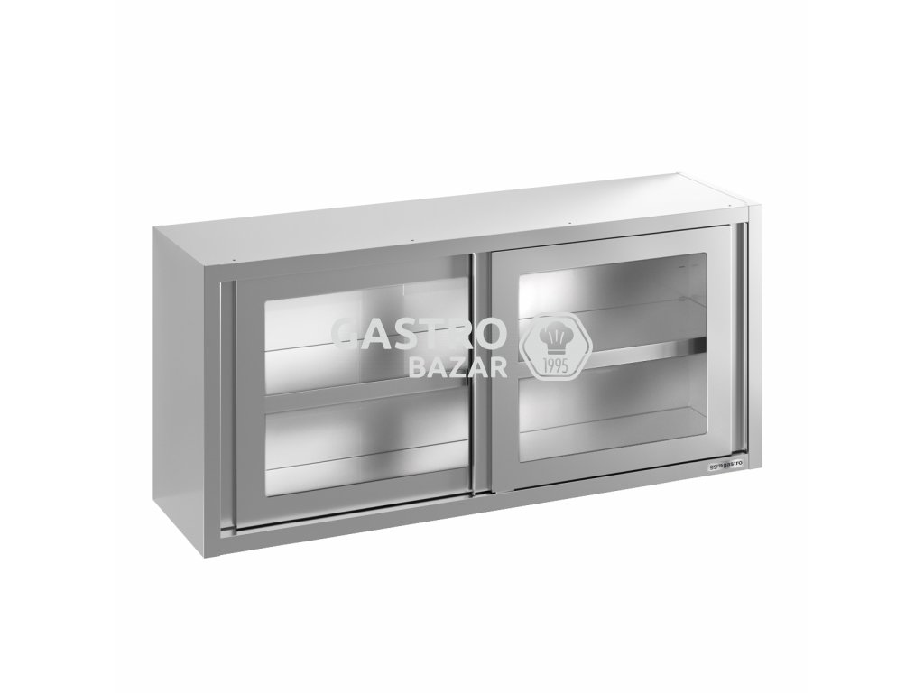 Nástěnná skříňka z nerezové oceli - 1200x400 mm - s posuvnými skleněnými dvířky - výška 650 mm